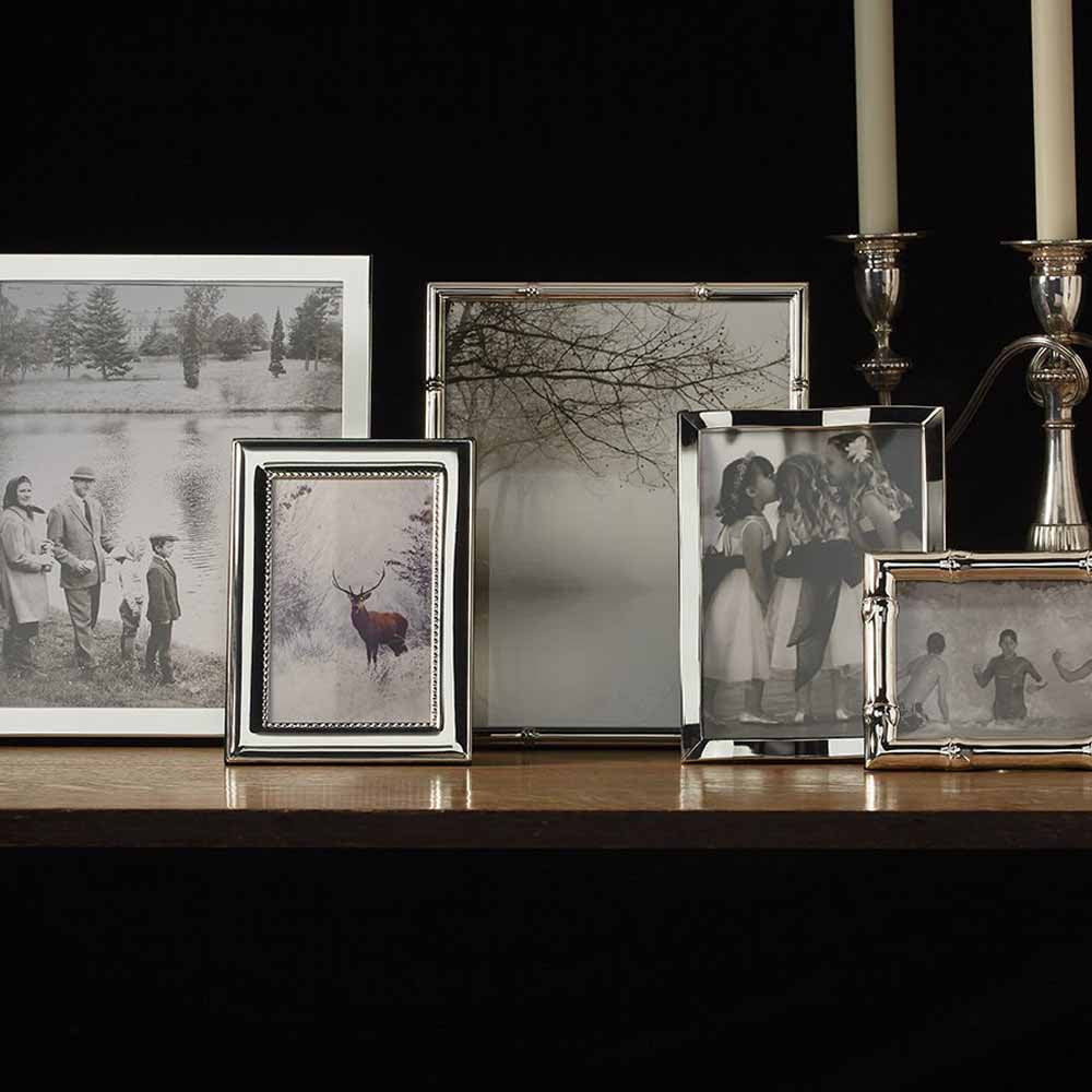 This splendid silver frame with beaded edging is a fresh approach to a traditional elegant silver profile. An exquisite wedding or anniversary gift.