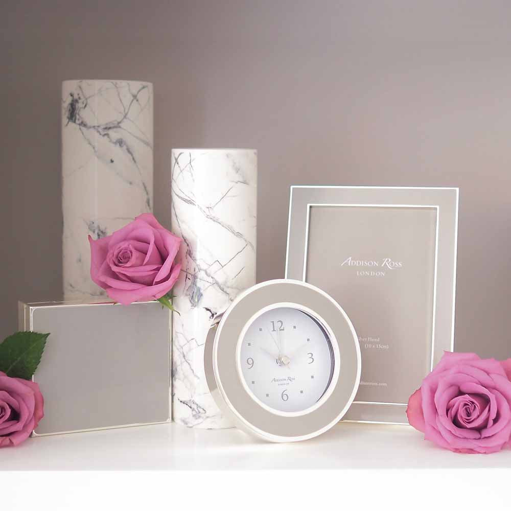 This exclusive Addison Ross designed chiffon grey enamel and silver frame sets off both colour and black and white photos beautifully. Group a collection together to create a beautifully tasteful display.