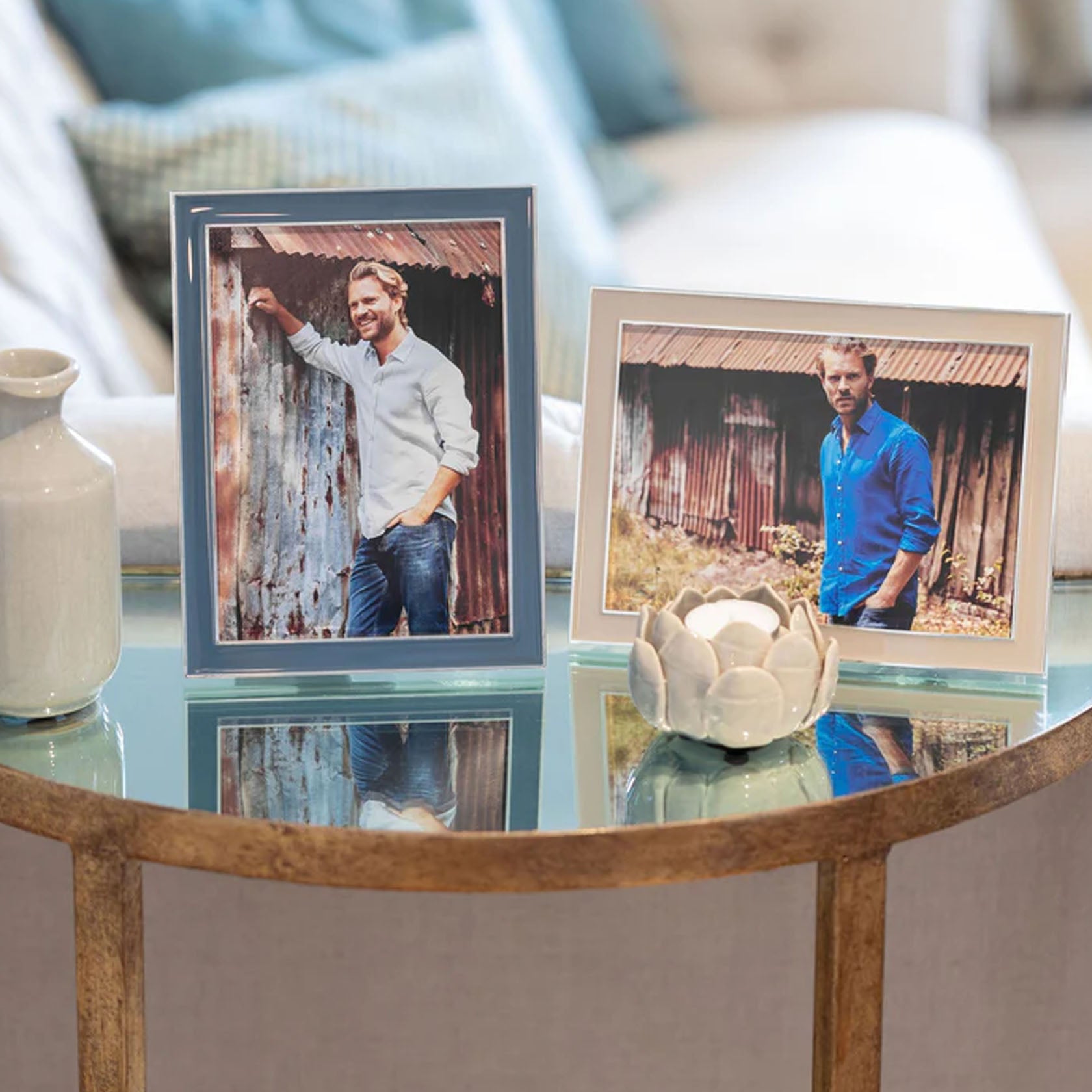 This exclusive Addison Ross designed denim enamel and silver 15mm frame is one of Addison Ross' most popular designs. Chic and stylish, it is subtle and universally popular and sets off both colour and black and white photos beautifully. Group a collection together to create a beautifully tasteful display. Able to stand both Landscape and Portrait.