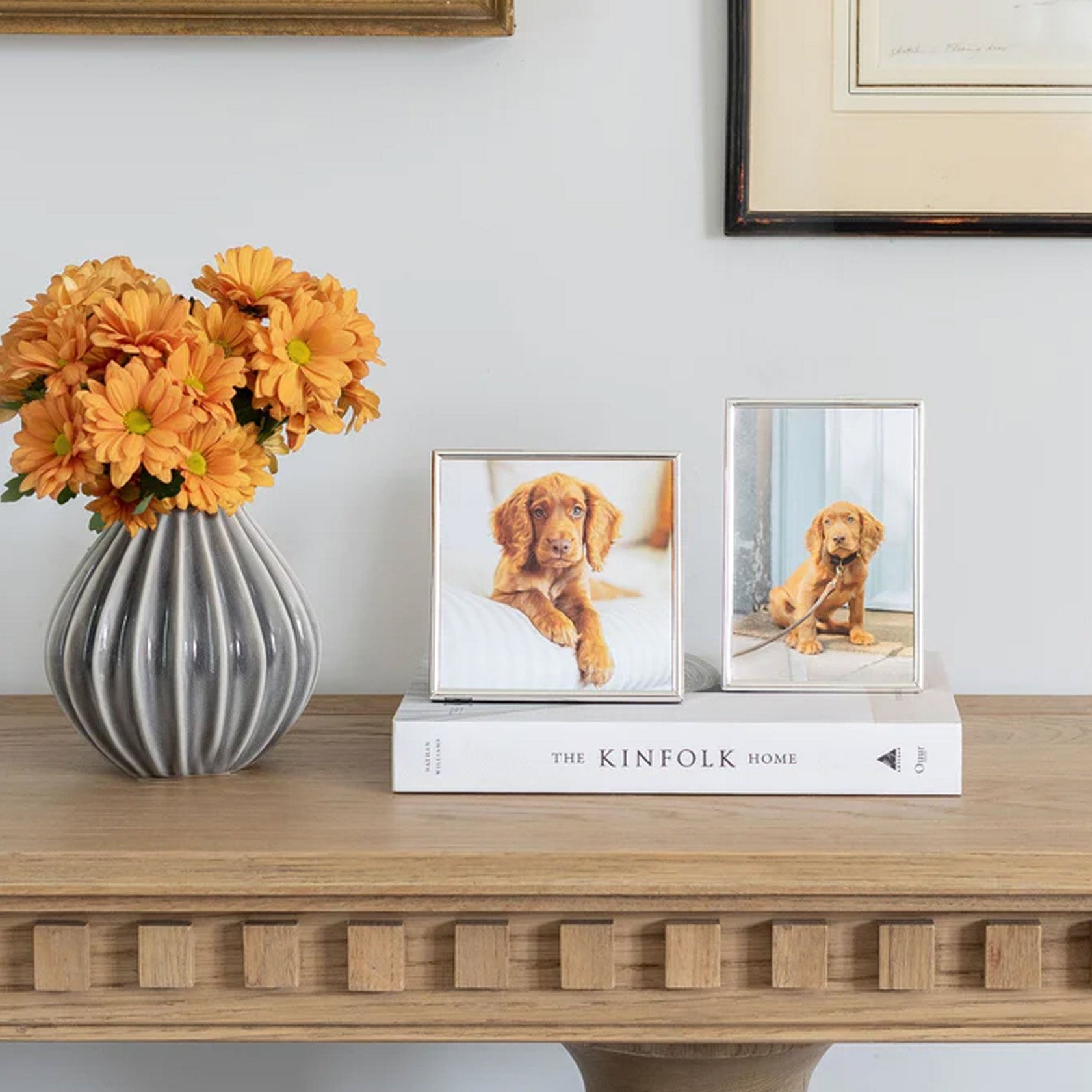 Fine Edged Silver Photo frame. Very simple and elegant , this frame sits beautifully in any classic or contemporary interior setting. It looks wonderful grouped together with other silver frames.