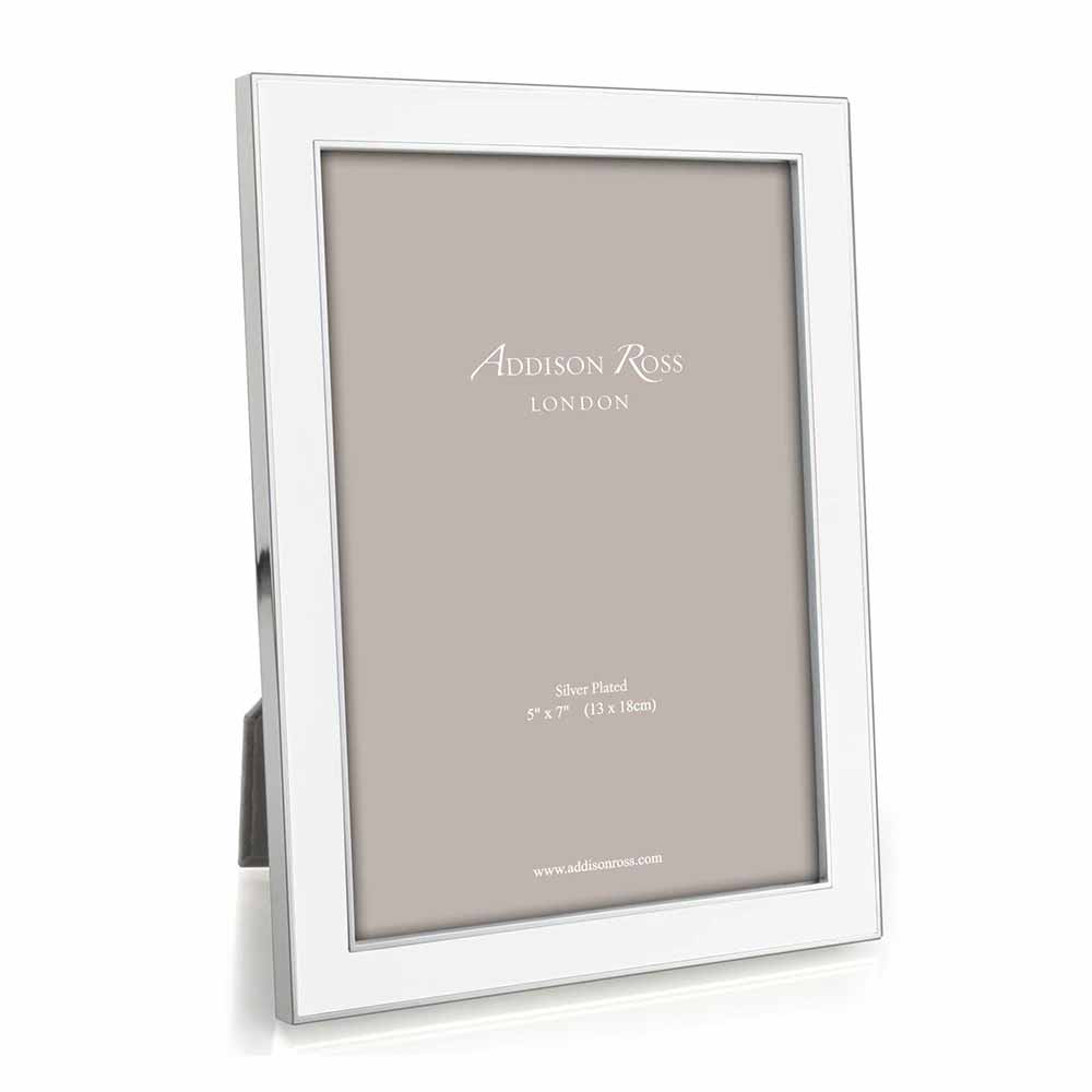 This exclusive Addison Ross designed white enamel and silver frame sets off both colour and black and white photos beautifully. Very popular for wedding presents as it will go with any colour scheme. Group a collection of white frames together to create a beautifully tasteful display.