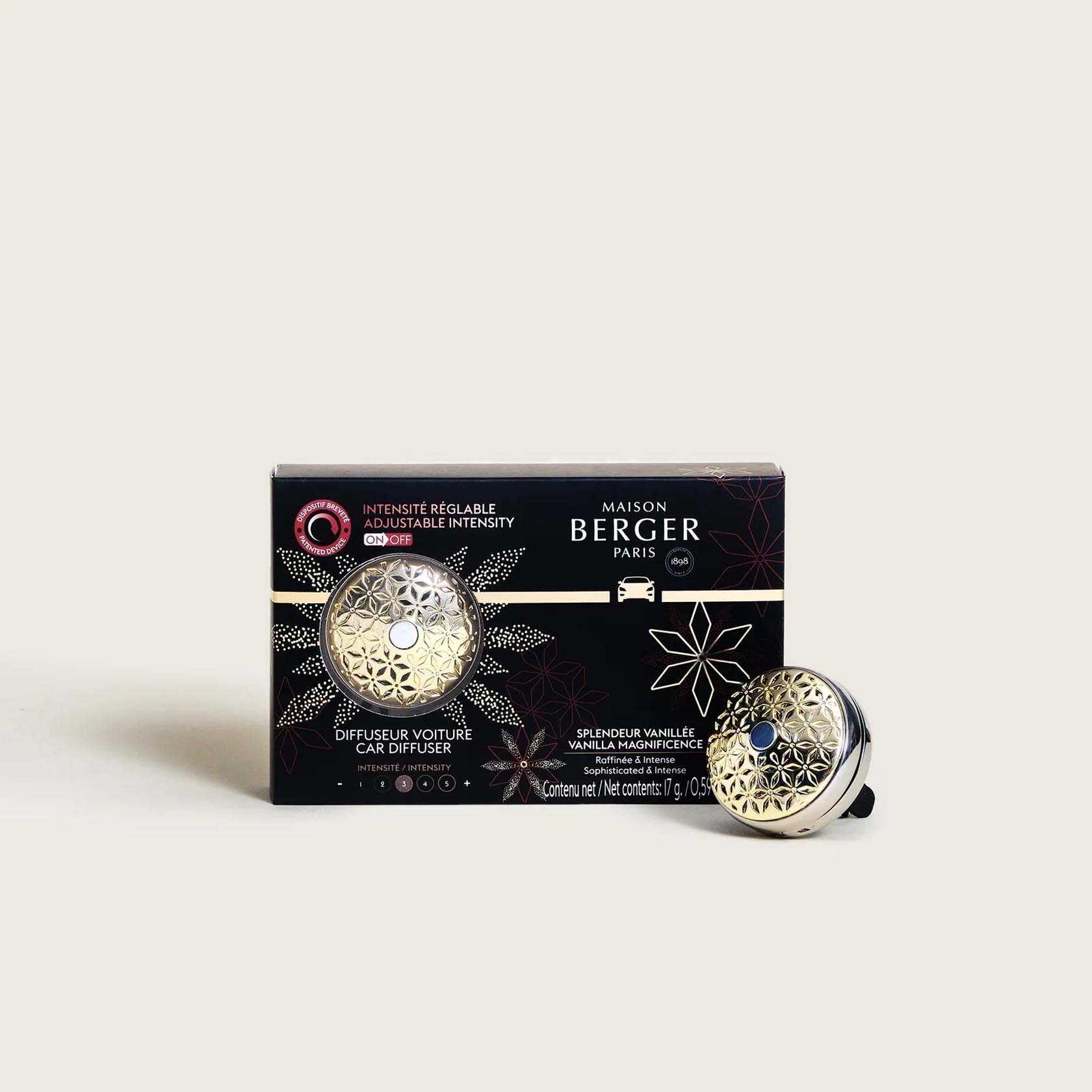 Discover the Adjustable Pomelis Car Diffuser, with its elegant two-tone design and Vanilla Magnificence scent, for a unique sensory journey.