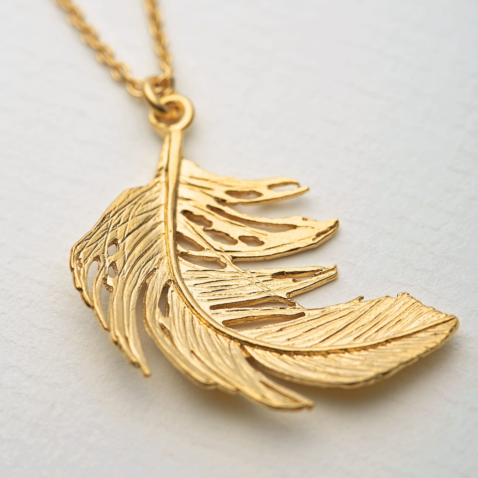 - Alex Monroe Big Feather Necklace, Gold Plated