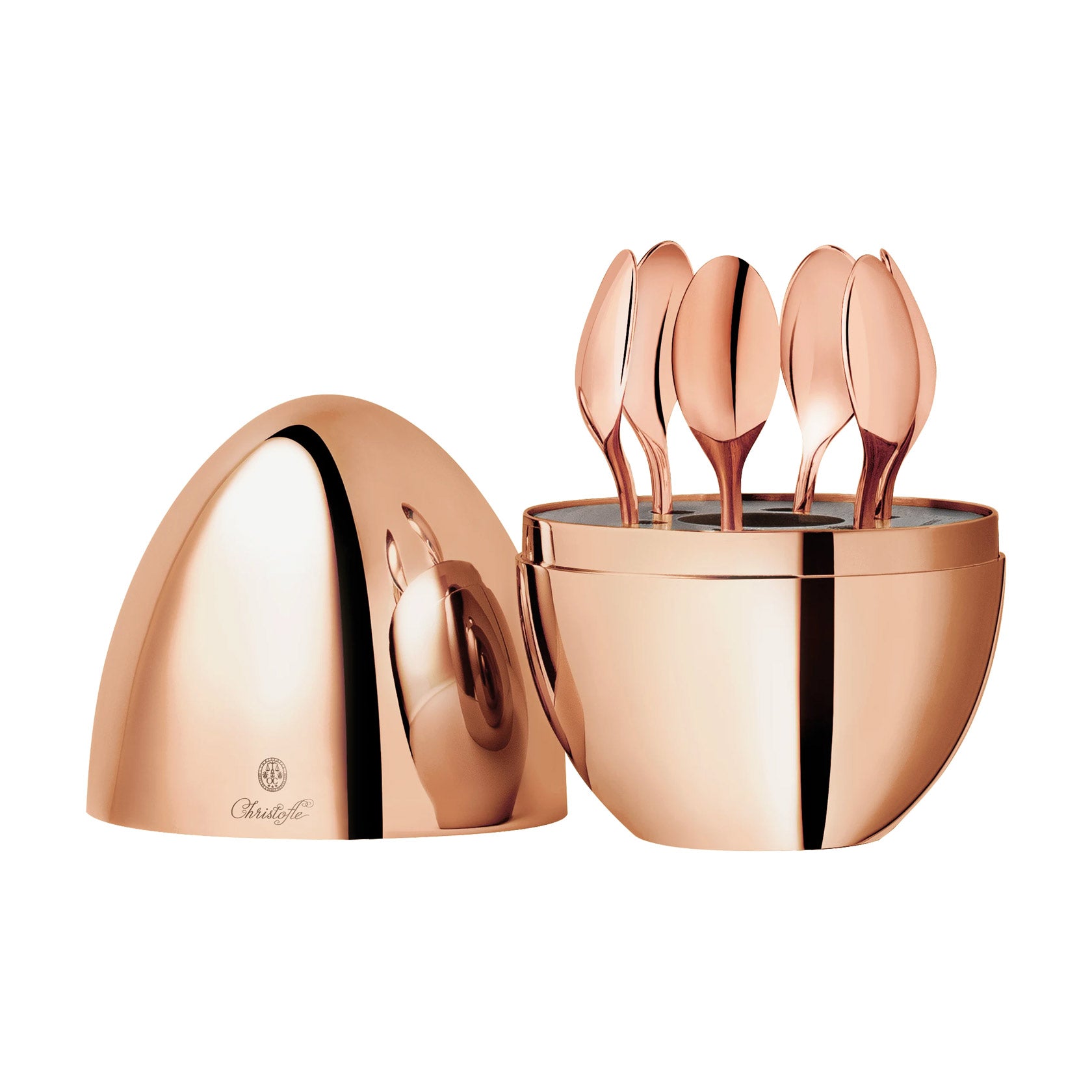 - Christofle Mood Coffee 6 Rose Gold Piece Set, Silver Plated Cutlery Set with Chest