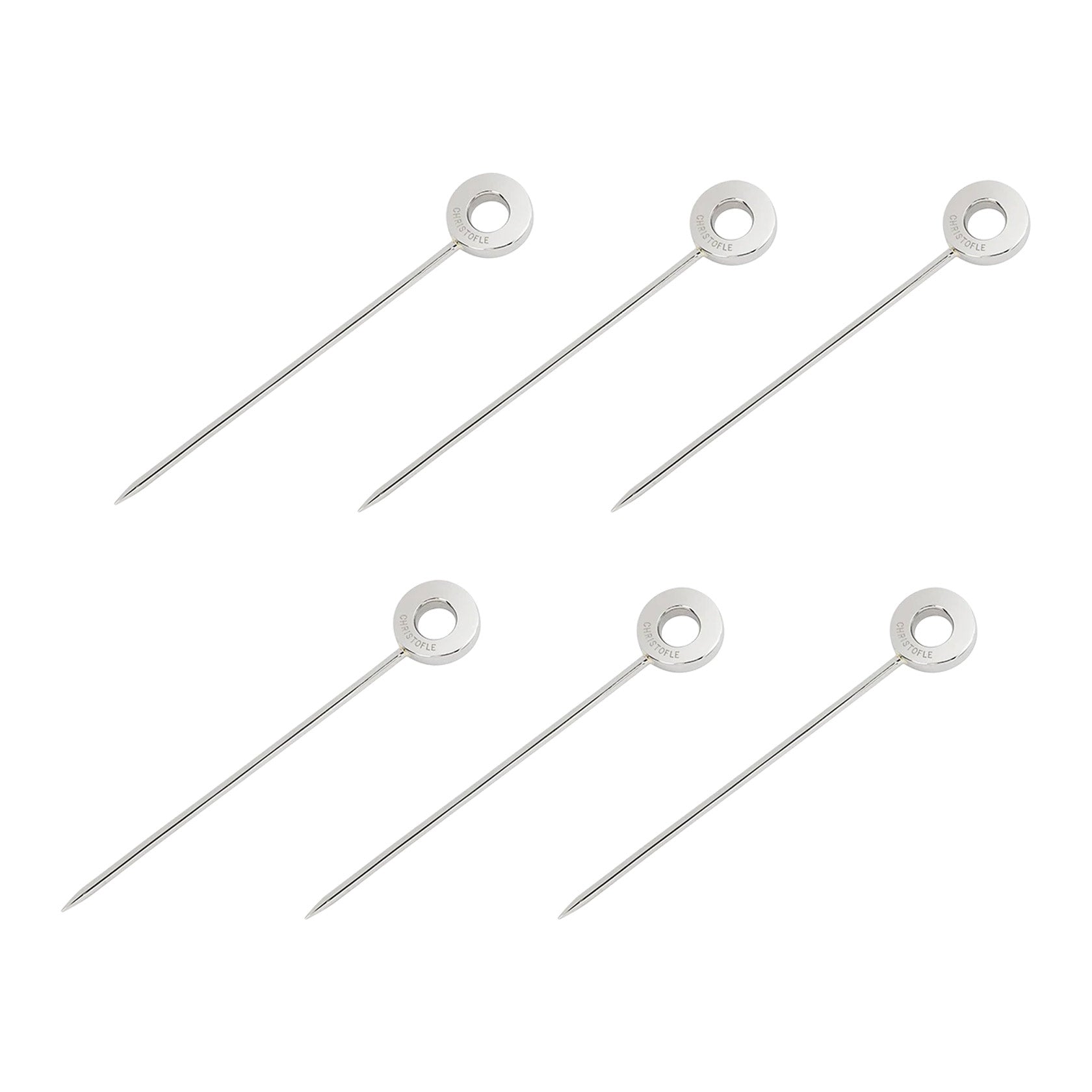 Six stainless steel cocktail picks perfect drinks and appetizers. Inspired by the nautical world, these pieces with fluid and contemporary lines are apart of Christofle's Outdoor Collection. Perfect for outdoor entertaining from garden parties to cocktail hours on your terrace or yacht.