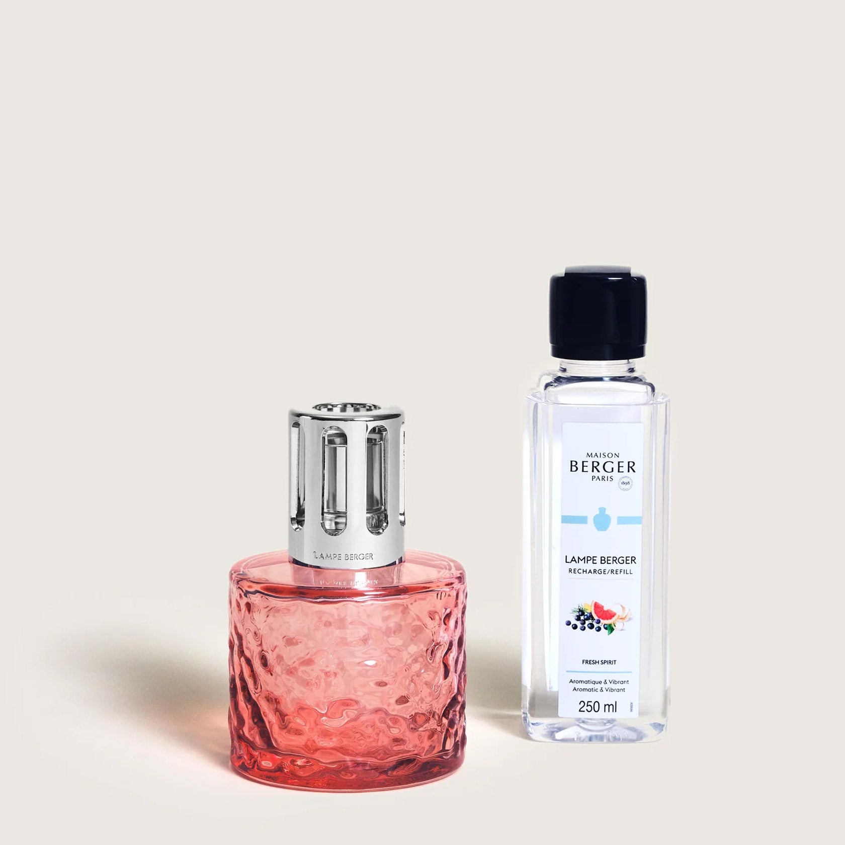 Enhance your home with the Coral Summer Lamp Berger Gift Pack, paired with the Fresh Spirit fragrance and its refreshing blend of juniper and grapefruit notes.