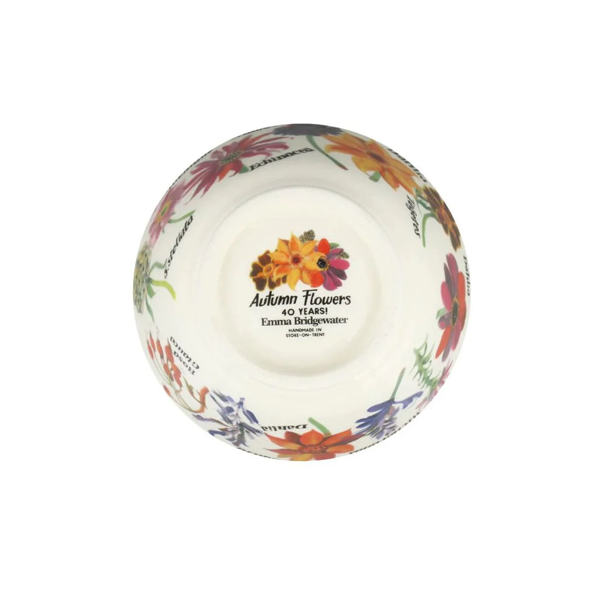 The nights may be drawing in but the flowers on this Autumn Flowers Small Old Bowl are telling us that the year isn’t over just yet. Continue to enjoy the sight of vibrant Michaelmas daisies, meadowy scabious, golden tagetes and showy dahlias on this floral bowl, if not in your own garden.