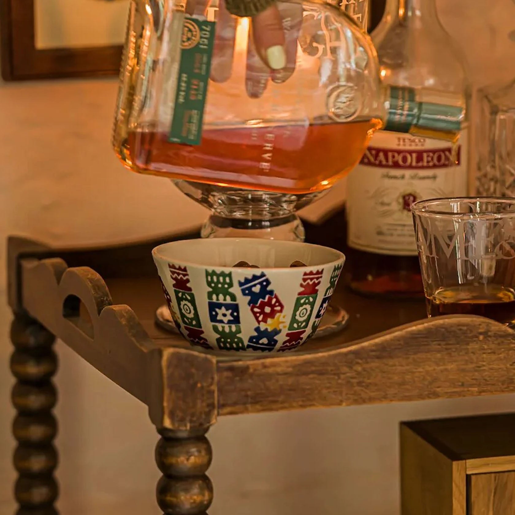 Crisps, nuts, olives, truffles, cereal, porridge, soup, cherry tomatoes … the list of things you could fill a Christmas Crackers Small Old Bowl with is endless. With its jolly Christmas cracker decoration, our small serving bowl can even be put to good use when it’s time for parlour games after dinner: use the bowl to contain the slips of paper containing words for charades or the roles for wink murder.