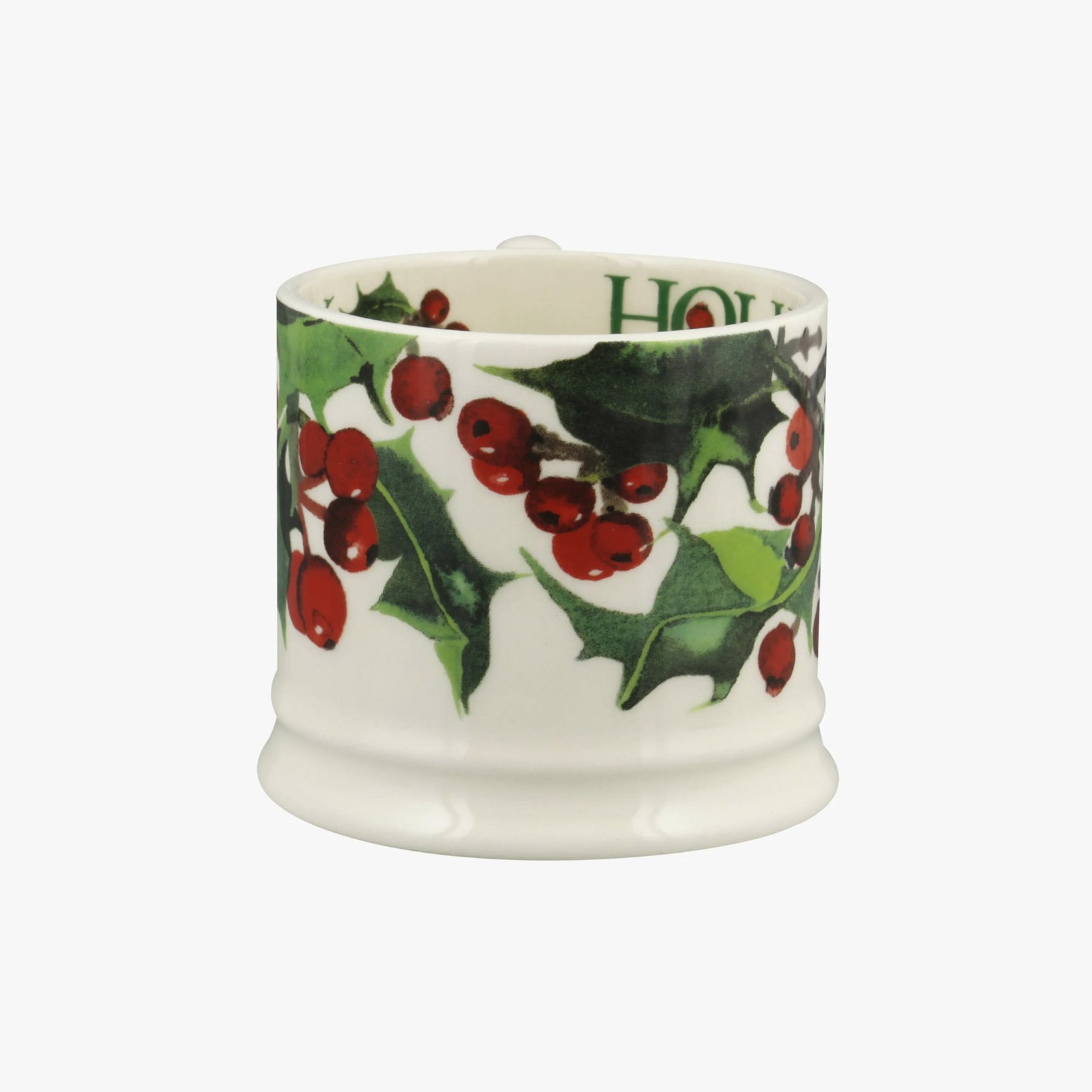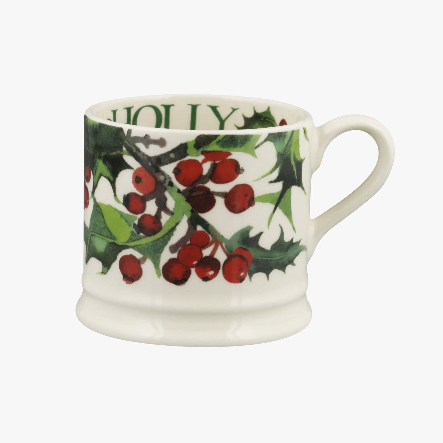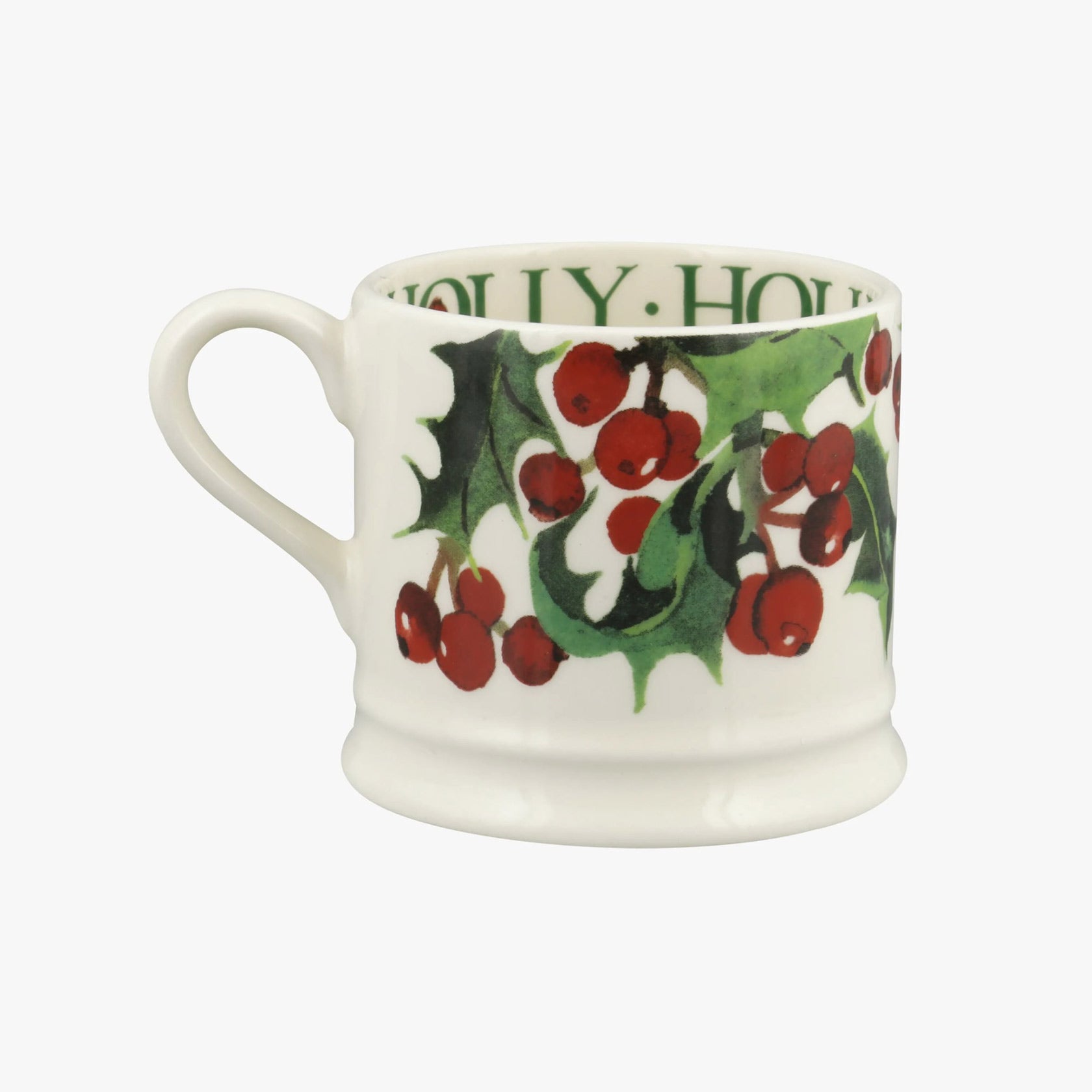 Warm up on a cold winter morning with a small cup of coffee from this Holly Small Mug.