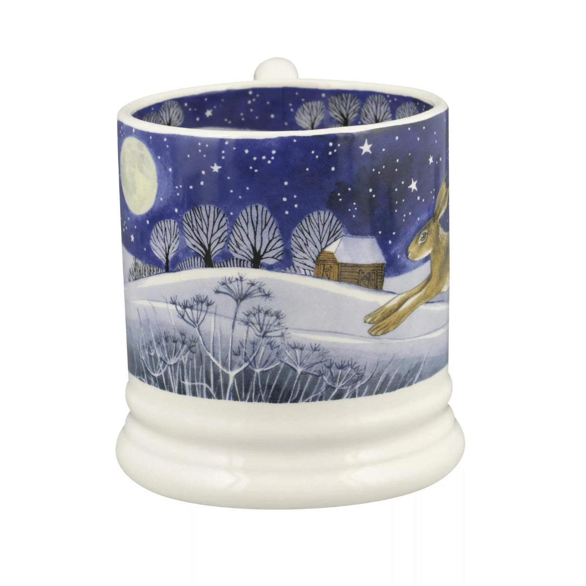 Step into this midnight scene with a beautifully printed 1/2 pint mug featuring a hare bounding through the countryside.