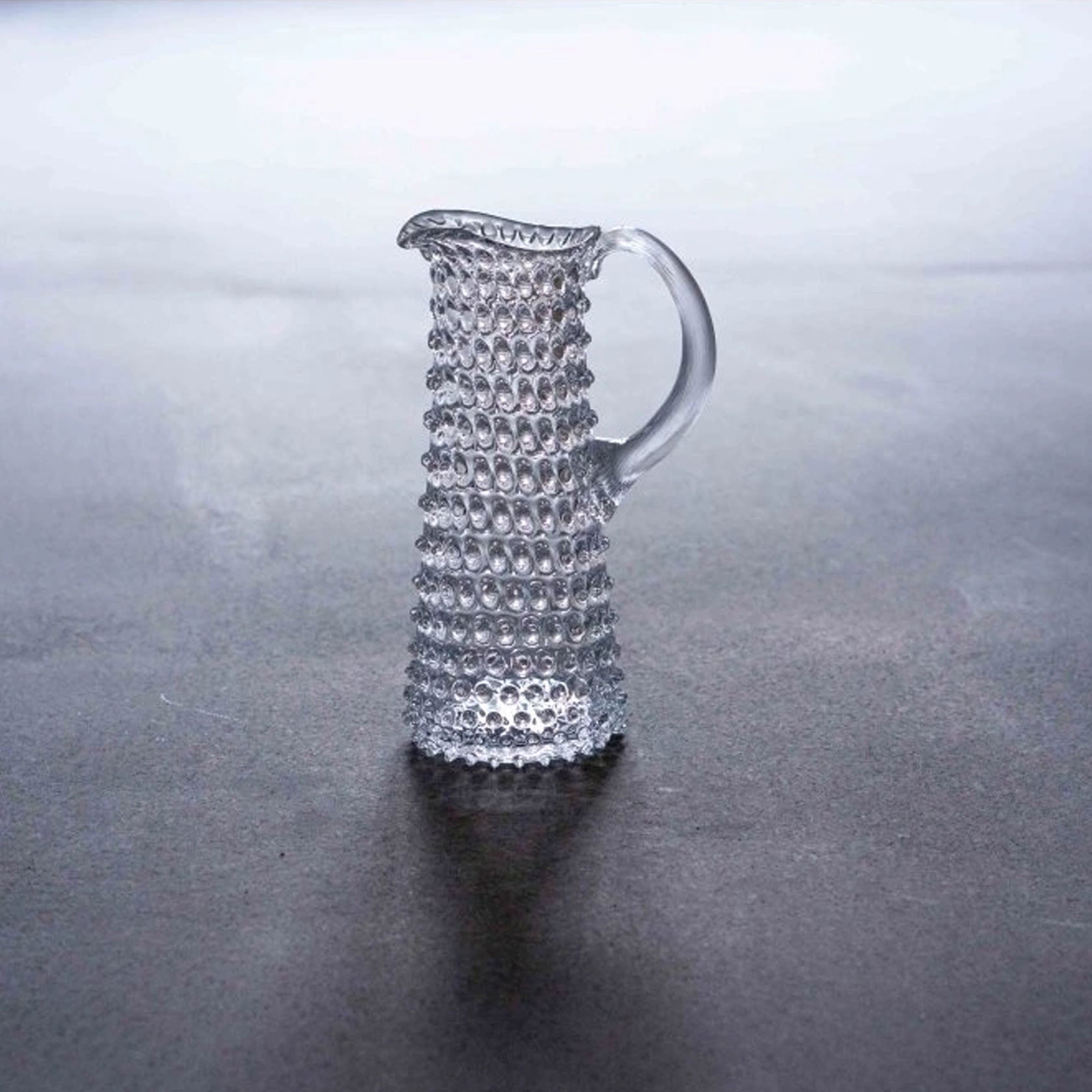 Klimchi's classic Bohemian crystal glassware truly comes into its own with this clear slender jug. The superior craftsmanship of the hobnail design allows light to play beautifully through its tapered sides, making it a truly stunning centre piece for all those particularly special occasions.