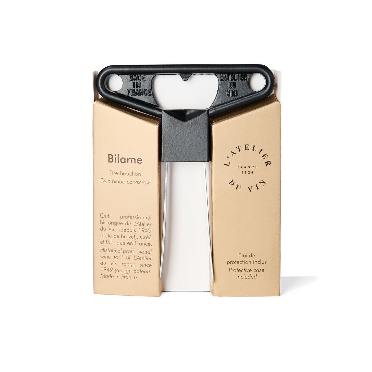 The Bilame twin blade corkscrew, an historical part of L’Atelier du Vin’s range since 1949 (patent date), extracts and leaves the cork intact, even those which are old and fragile.