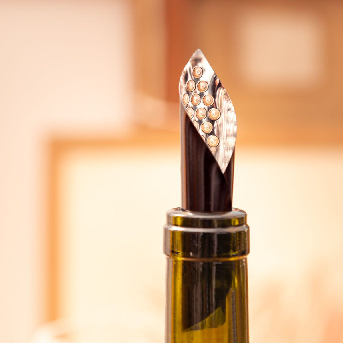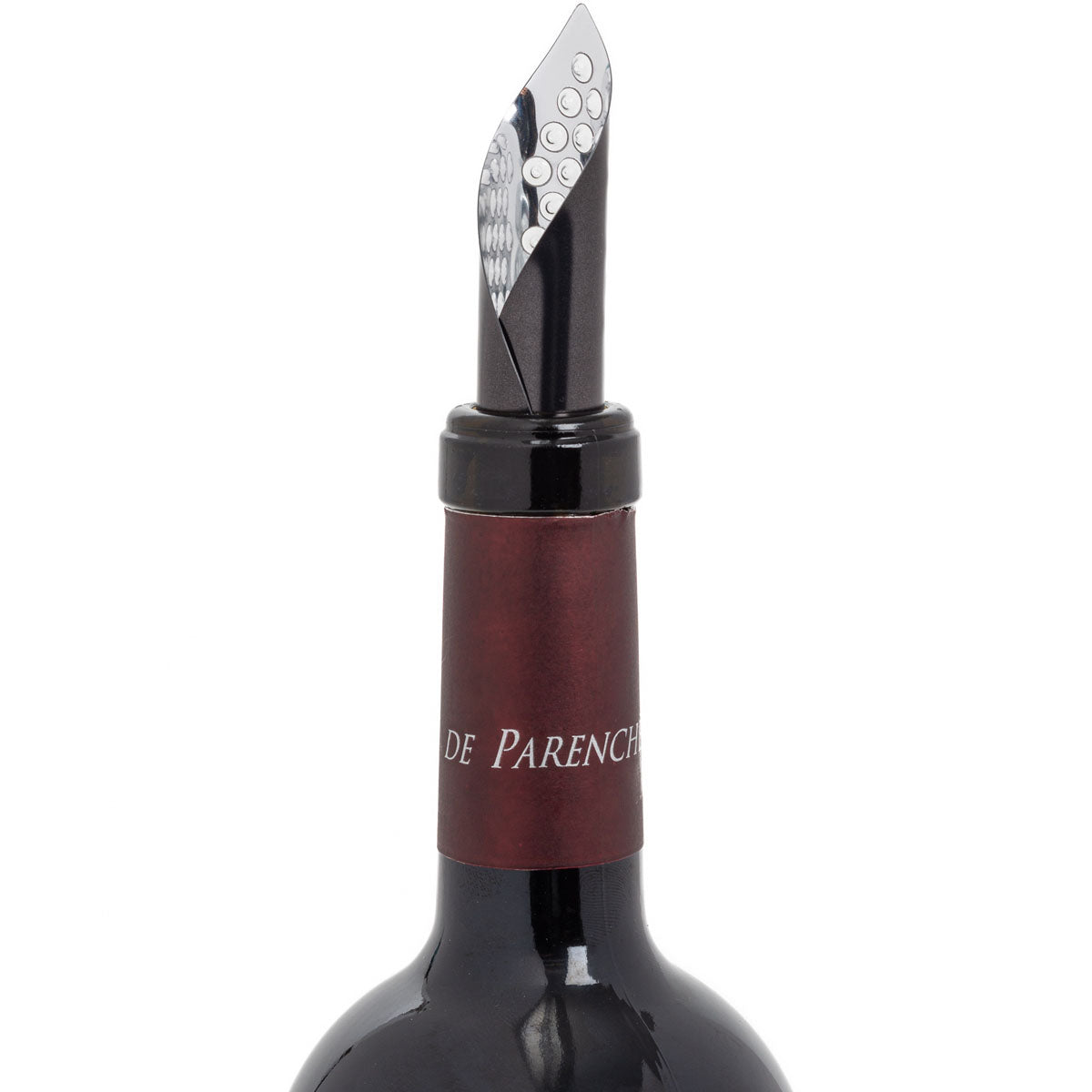 Meanwhile, the Flexible Aerator Pourer has a studded oxygenation zone that gently reveals the full aroma of wine as it is poured. The silver color plays with the reflections of the wine, enhancing colors and turning the act of simple pouring into a sublime ritual.