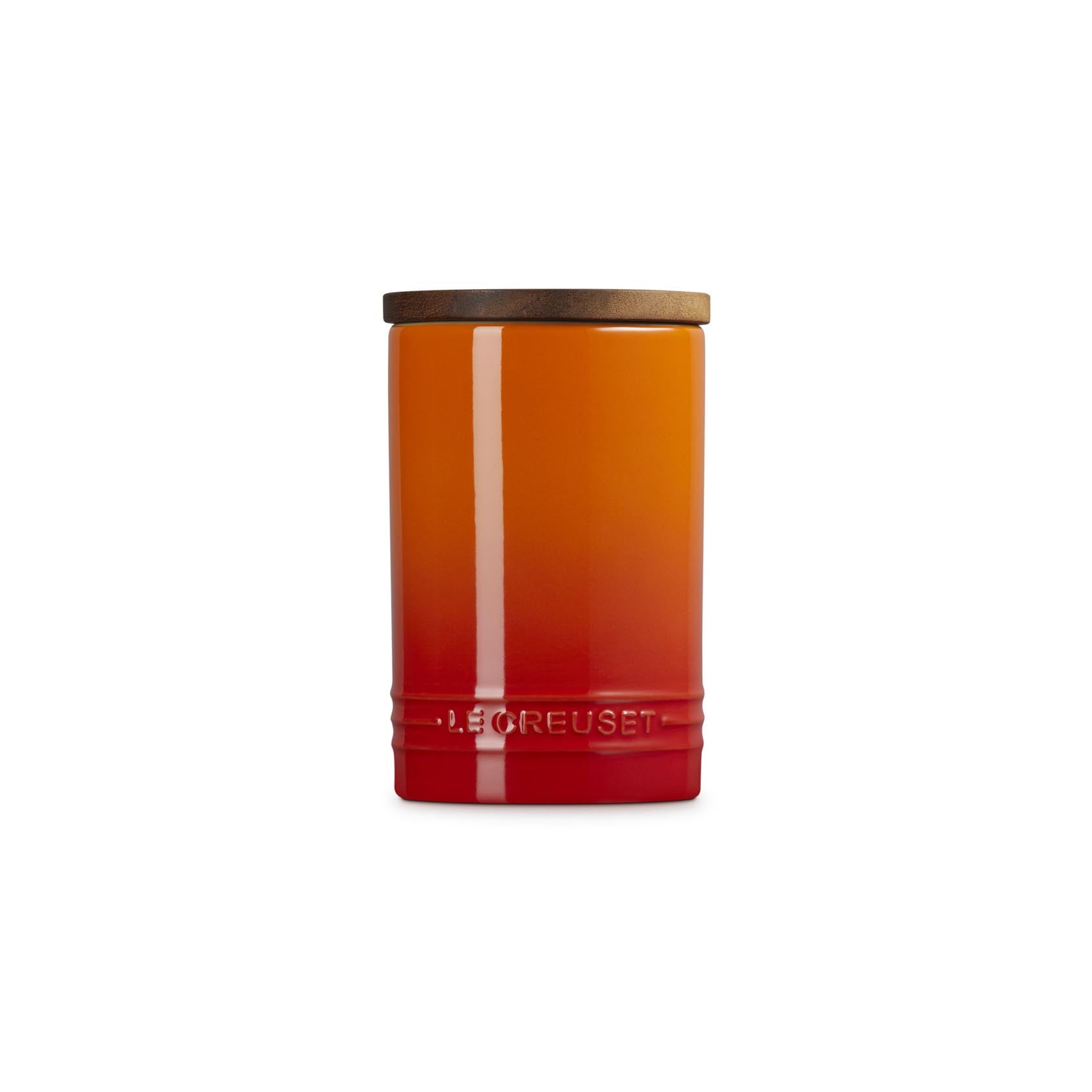 Introducing the Signature Storage Jar with Wooden Lid, a must-have kitchen essential providing the perfect way to store and keep ingredients fresh and to add colour on your kitchen shelves. A silicone seal on the lid keeps the Signature Storage Jar air tight. Made from specialist clays and fired at the highest temperatures, all Le Creuset stoneware is strong and durable. Thanks to Le Creuset’s enamelling expertise Le Creuset stoneware is also easy to clean and scratch resistant. Available in a wide range of vibrant colours.