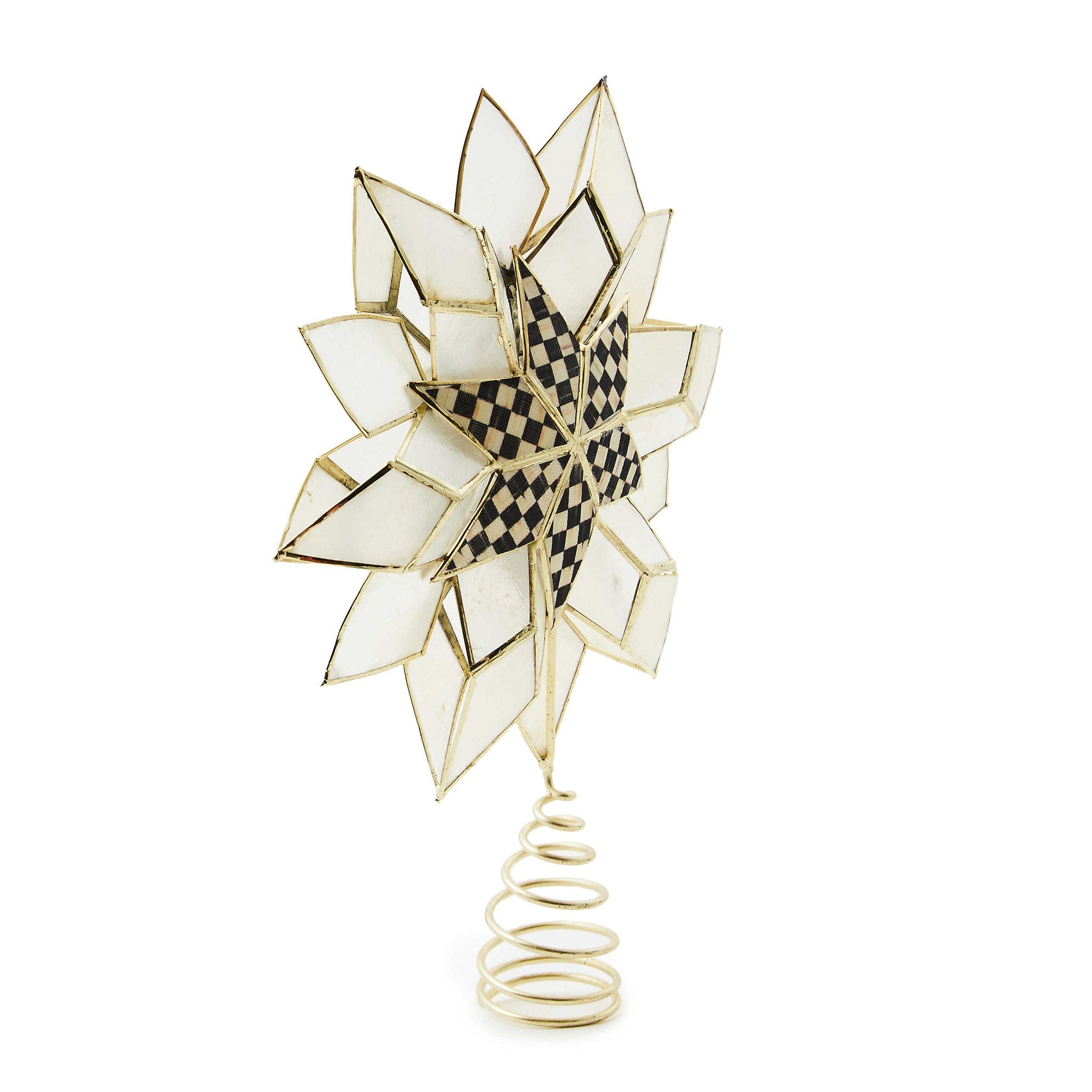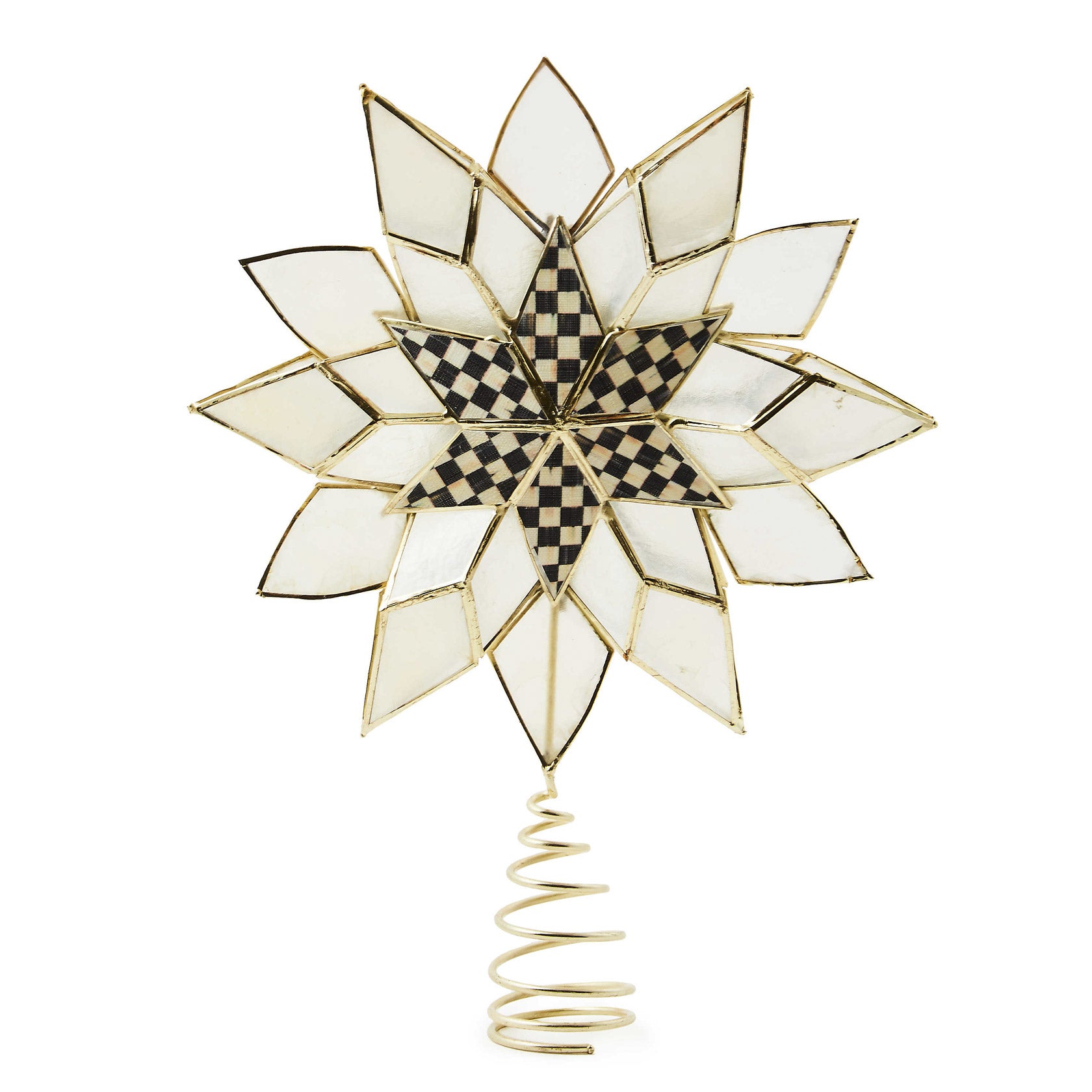 Finish the tree with a flourish with this dimensional capiz tree topper that’s accented with a six-point Courtly Check star in the center.