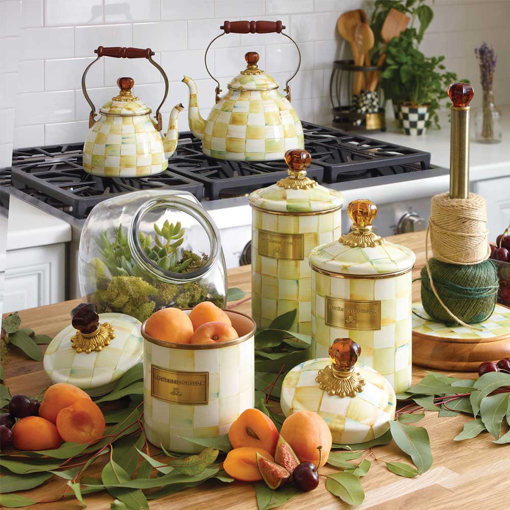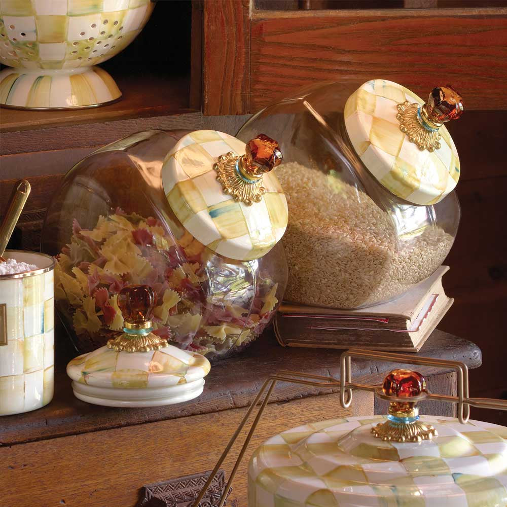 - Mackenzie-Childs Parchment Check Cookie Jar with Enamel Lid