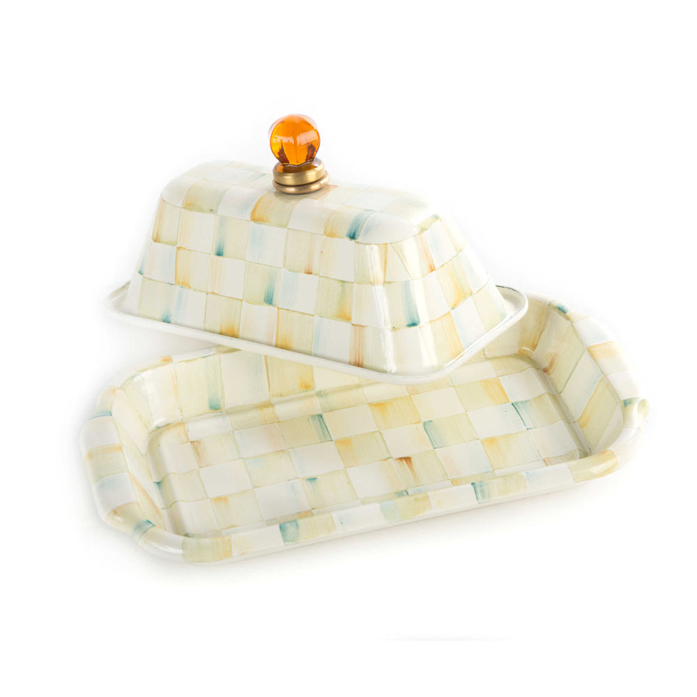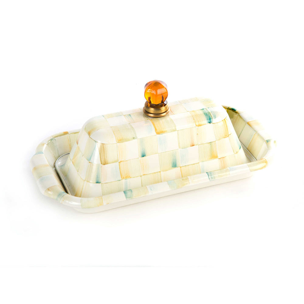 - Mackenzie-Childs Parchment Check Enamel Butter Box