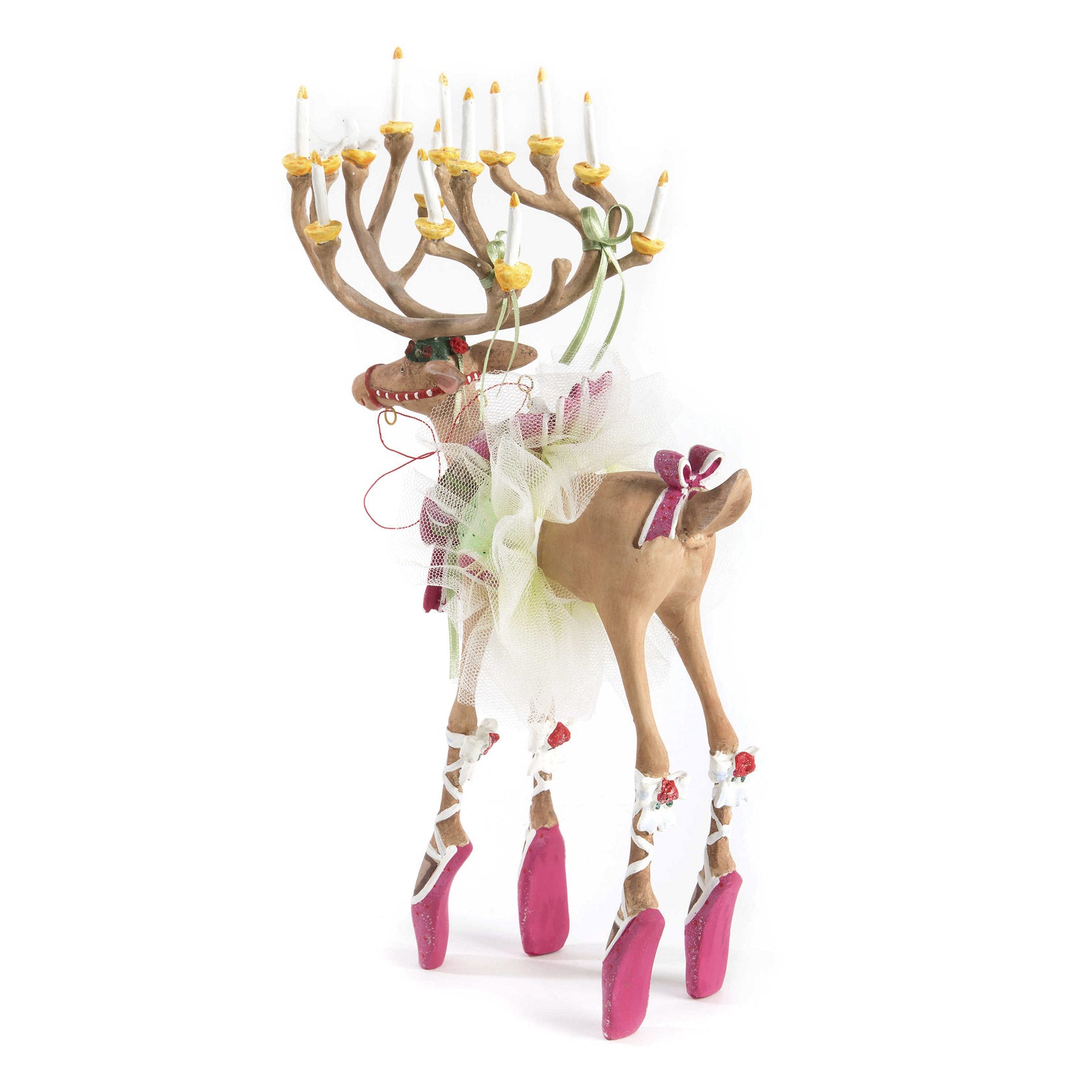 Dash Away, inspired by the Christmas classic “’Twas the Night Before Christmas,” features Santa’s eight reindeer ready to take flight around the world, assisted by their delightfully dedicated elves, Santa, and Mrs. Santa. The Patience Brewster Dash Away Dancer Reindeer Figure strikes a pose in her holiday ballet finery. Always on pointe and gently holding a tiny white dove, this design is often the talk of the holiday party!