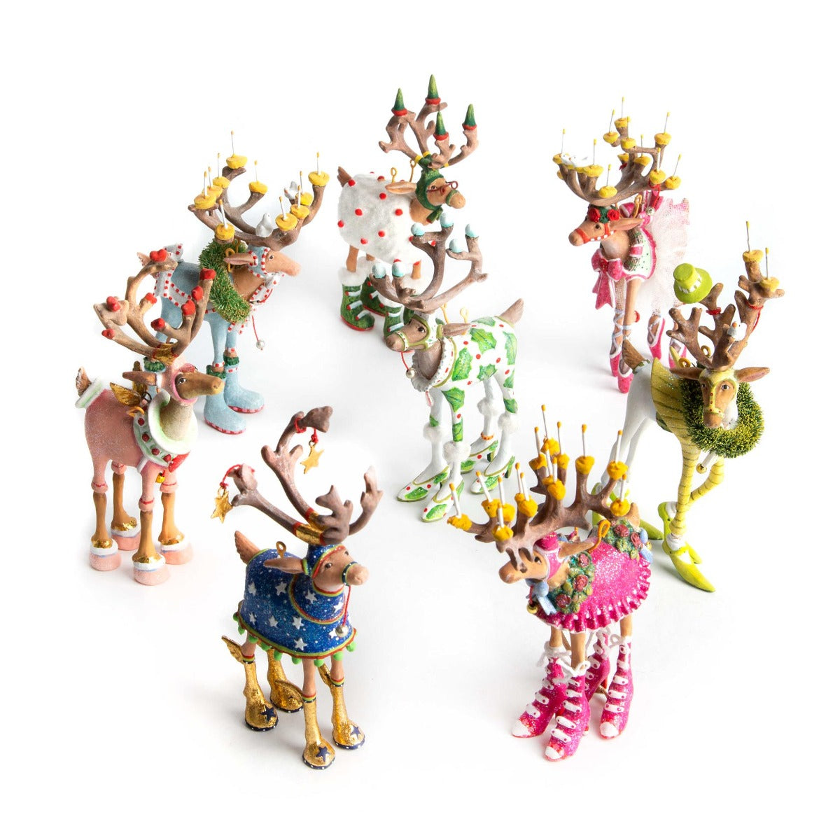 - Mackenzie-Childs Patience Brewster Dash Away Reindeer Mini Hanging Ornaments Set