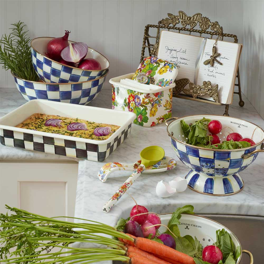 Royal Check is a hand-painted bounty of blues that draws upon shades seen in nature, from the skies overhead to the ever-changing waters of nearby Cayuga Lake. Each piece reflects the artisan's hand, so no two are exactly alike, but they all work together in perfect harmony. Pair it with our signature Courtly Check for a perfect check mate, or with Flower Market for a presentation that blooms with possibilities.