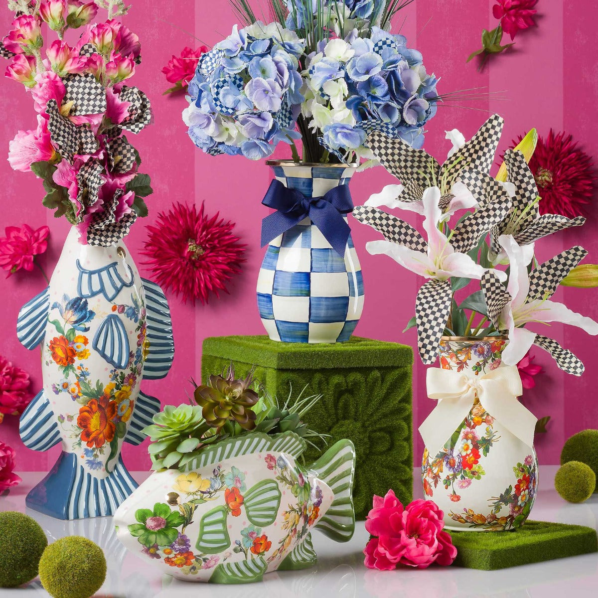 - Mackenzie-Childs Royal Check Enamel Vase, Tall