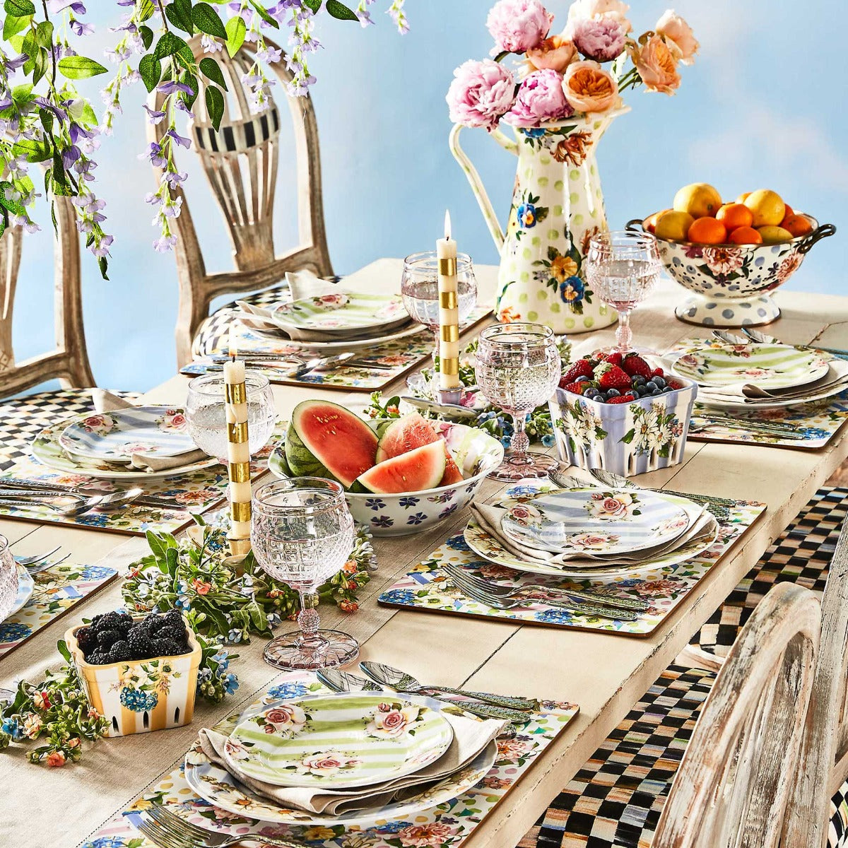 Top your table with Mackenzie-Childs' set of four Wildflowers Cork Back Placemats. The heat-resistant lacquered surface features art prints of the bountiful blooms of their Wildflowers pattern on a hardboard substrate that is backed with natural cork.