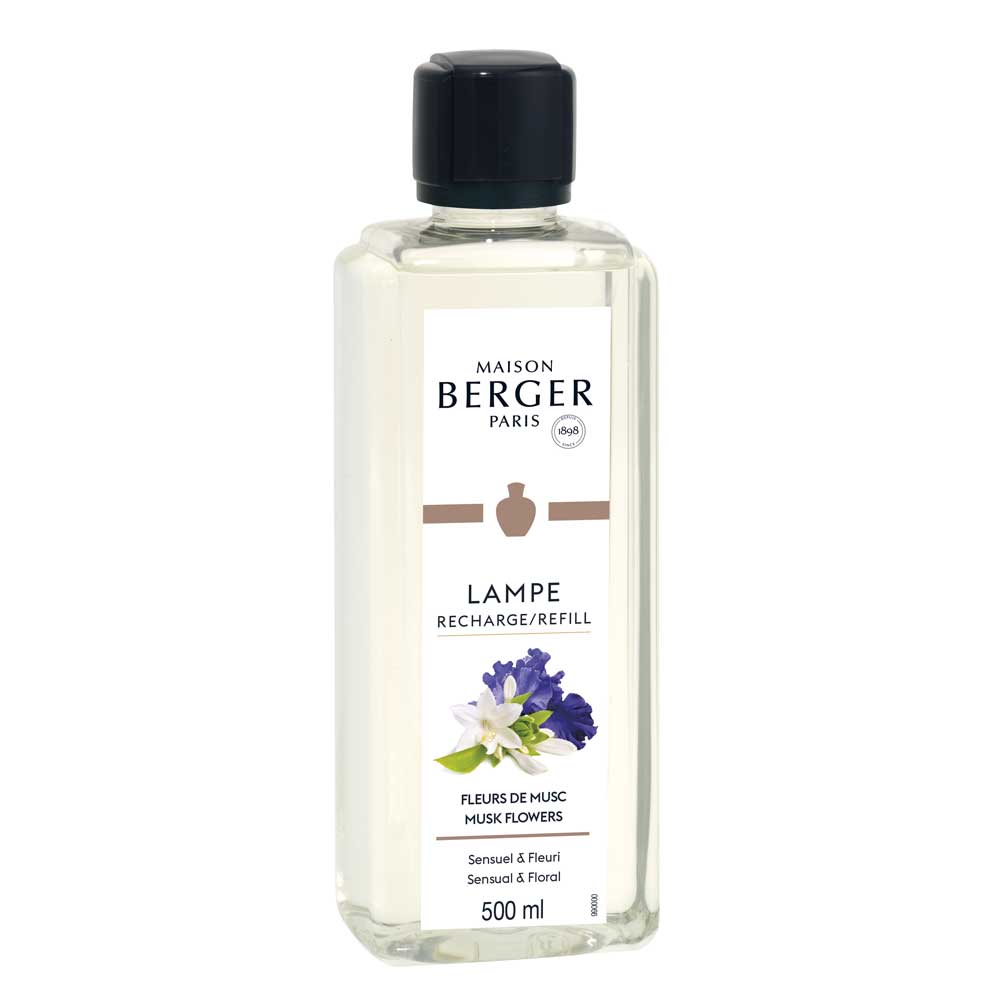 The 500ml Musk Flowers Lampe Berger fragrance is powerful and precious, exuding floral sensuality, ideal for perfuming and purifying your home. Tuberose diffuses beneficial warmth, accompanied by joyful mandarin. This also emphasises the beauty of jasmine and the powdery scents of iris, all accompanied by the dainty trail of ylang-ylang and the roundness of white musk with aphrodisiac scents.