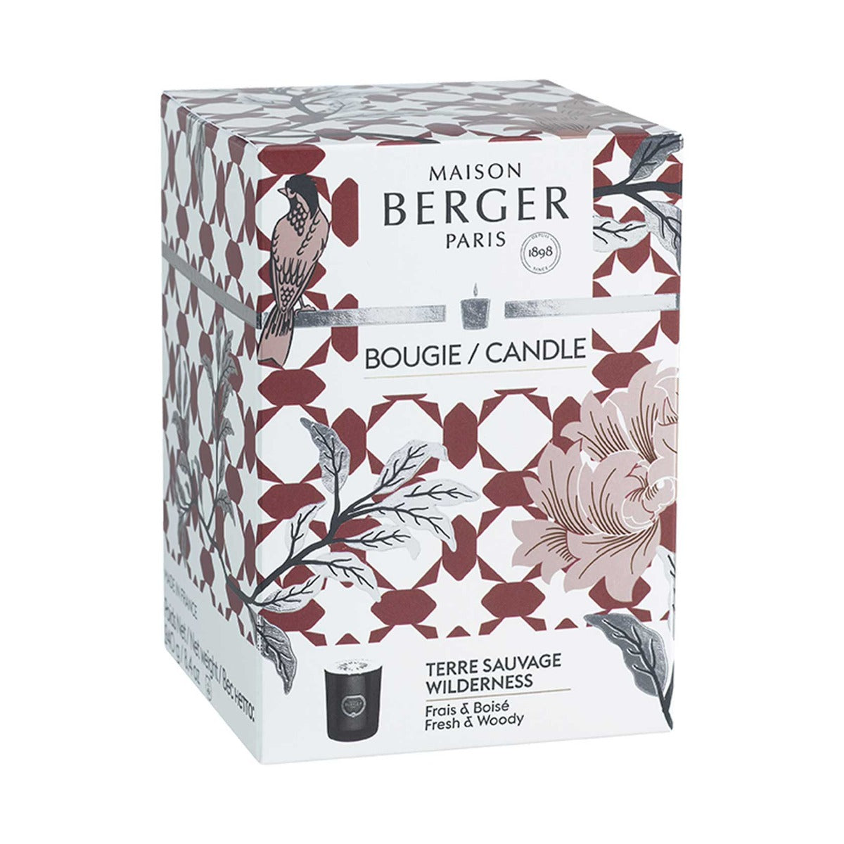 The Wilderness Black Prism Scented Candle blends into any room of the house due to its elegance and simplicity. Its intense metallic lacquer enhances the objects, by playing with light reflexions, which gives it its precious aspect. The dark colour by excellence, black stands out and provides a touch of contrast to enhance your decoration with style. Silver nuances brighten up the candle and highlight the cap. The latter includes a decor in relief that recalls the faceting of the collection's catalytic lamp and scented bouquet.