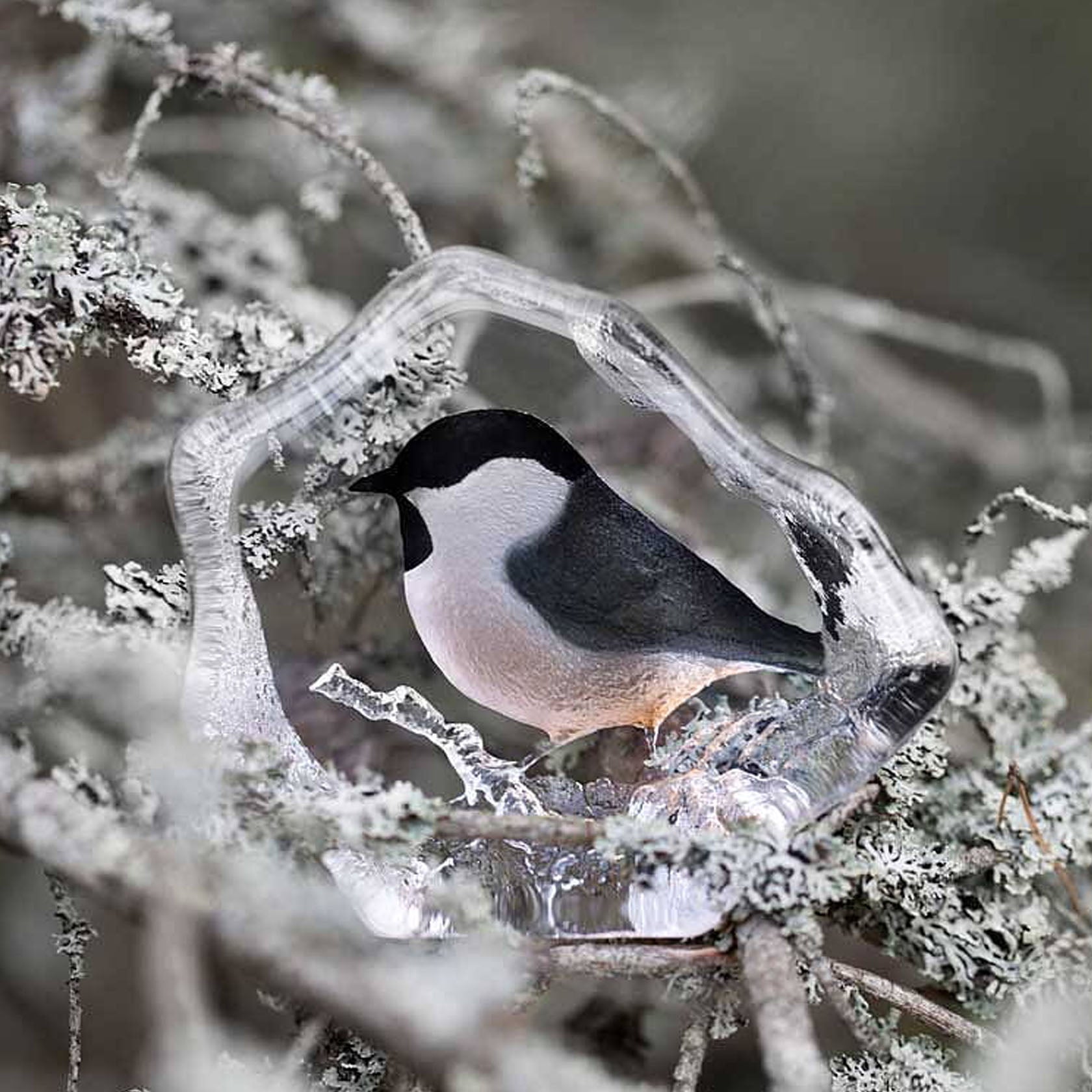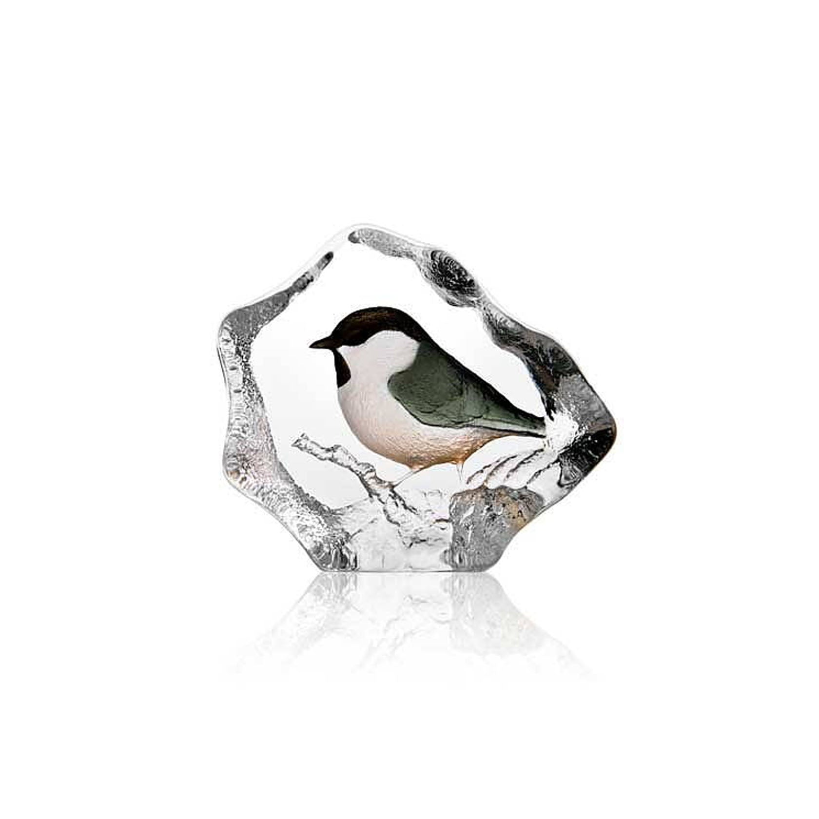 Cast crystal sculpture with painted and sandblasted motif. The sculpture is handmade in Sweden and signed on the bottom.