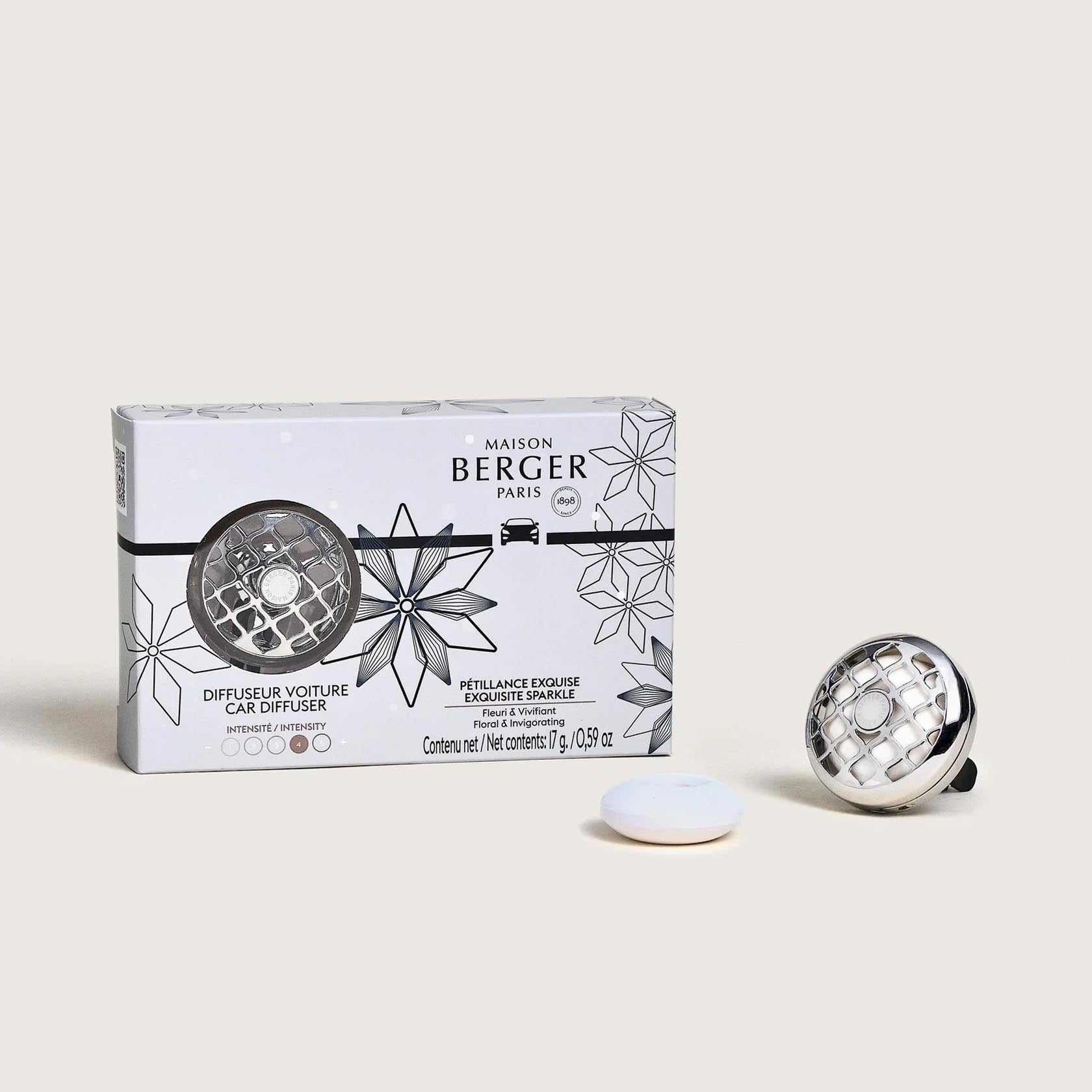 Rosalie Car Diffuser with Exquisite Sparkle: lively notes of grapefruit, rose, patchouli and musk accompany your journeys in style.