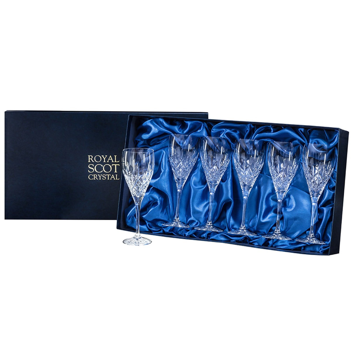 - Royal Scot Crystal London 6 Large Crystal Wine Glasses 238mm (Presentation Boxed)