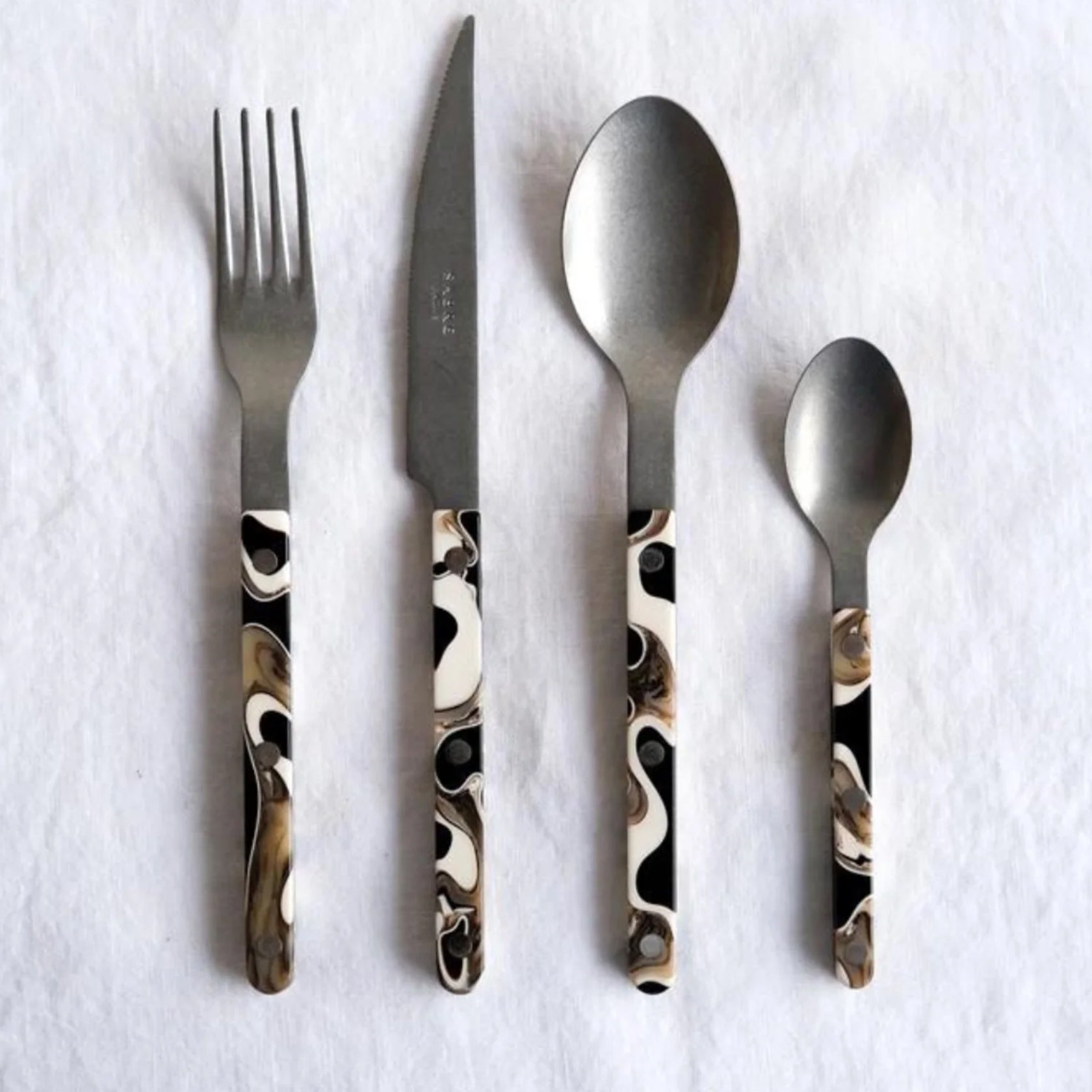 With the Bistrot collection, Sabre were inspired by some of their favourite places: restaurants, terraces and cafés. When designing this cutlery they wanted to faithfully capture the atmosphere while adding a modern touch: the styling is simple, the rivets are visible, while the colours and materials stand out nicely. From red to blue, not forgetting the superb materials with horn or tortoise effects. Available with gloss or vintage finishes, Sabre are sure you’ll enjoy this collection, which is designed to be both traditional and contemporary at the same time. .