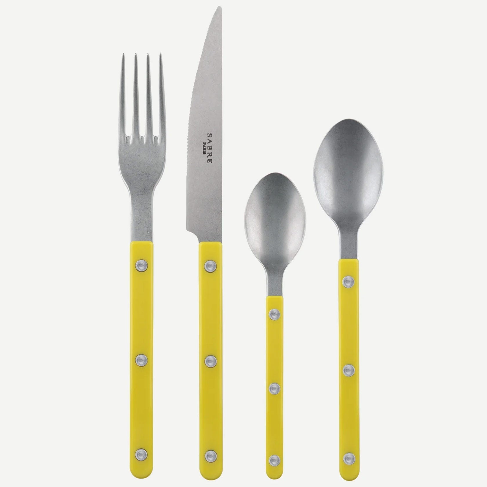 - Sabre Bistrot Vintage Solid Yellow 4 Pieces Cutlery Set, 040