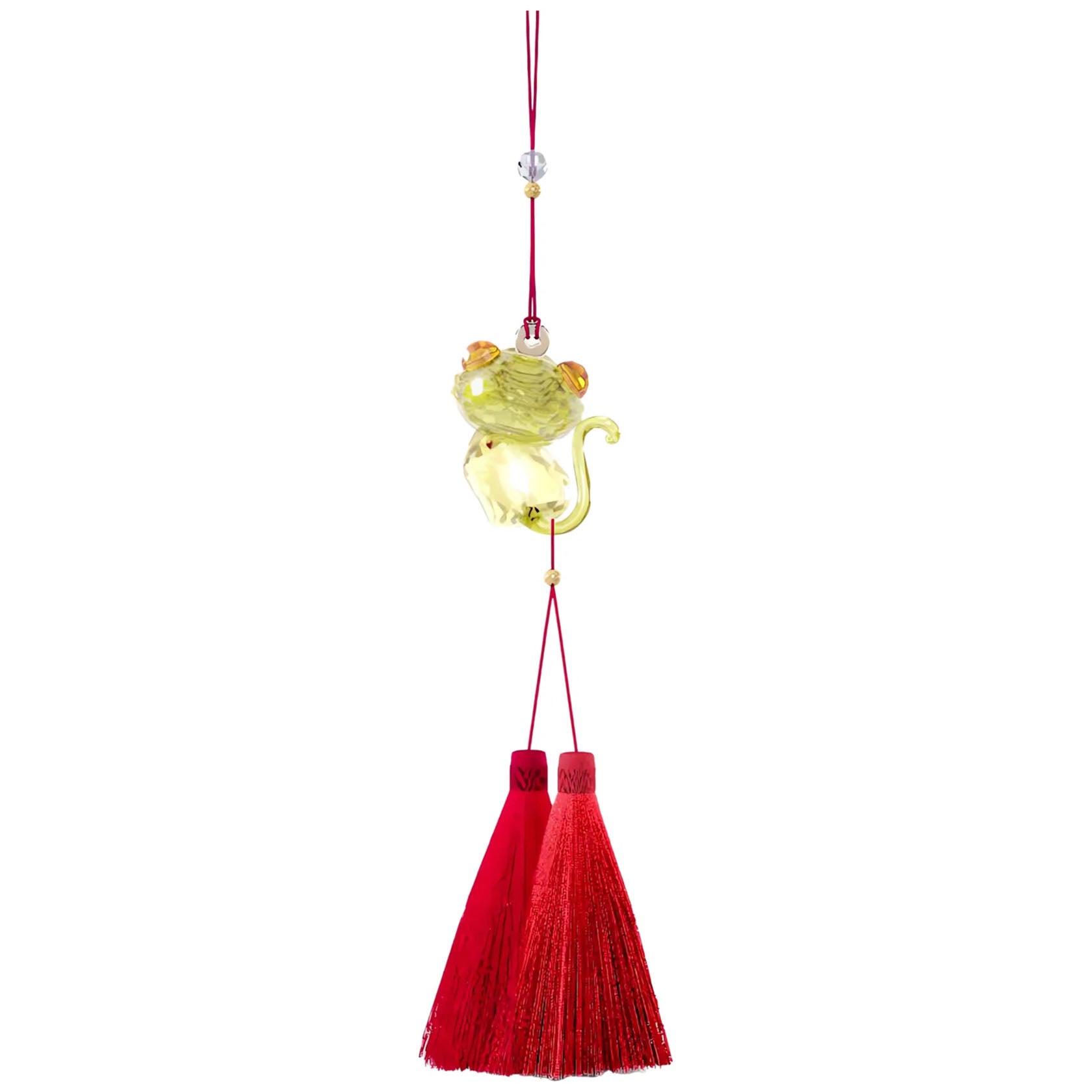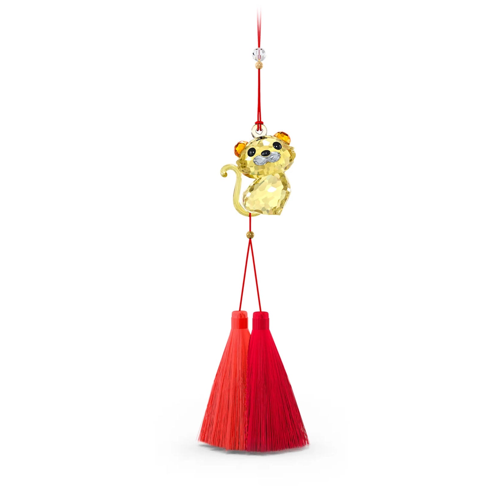 Celebrate 2022 with this cute tiger ornament, which perfectly embodies the charming and friendly character that those born in the Year of the Tiger are said to have. Very playful and fun, it sparkles with 396 facets of yellow, brown and clear crystal. The dual red and orange tassels and thread, gold-tone metal beads and black print add more auspicious color and intricate detail to the overall design. It is a perfect gift for Chinese New Year or any other occasion, especially when combined with the matching Tiger figurine. Decoration object. Not a toy. Not suitable for children under 15.