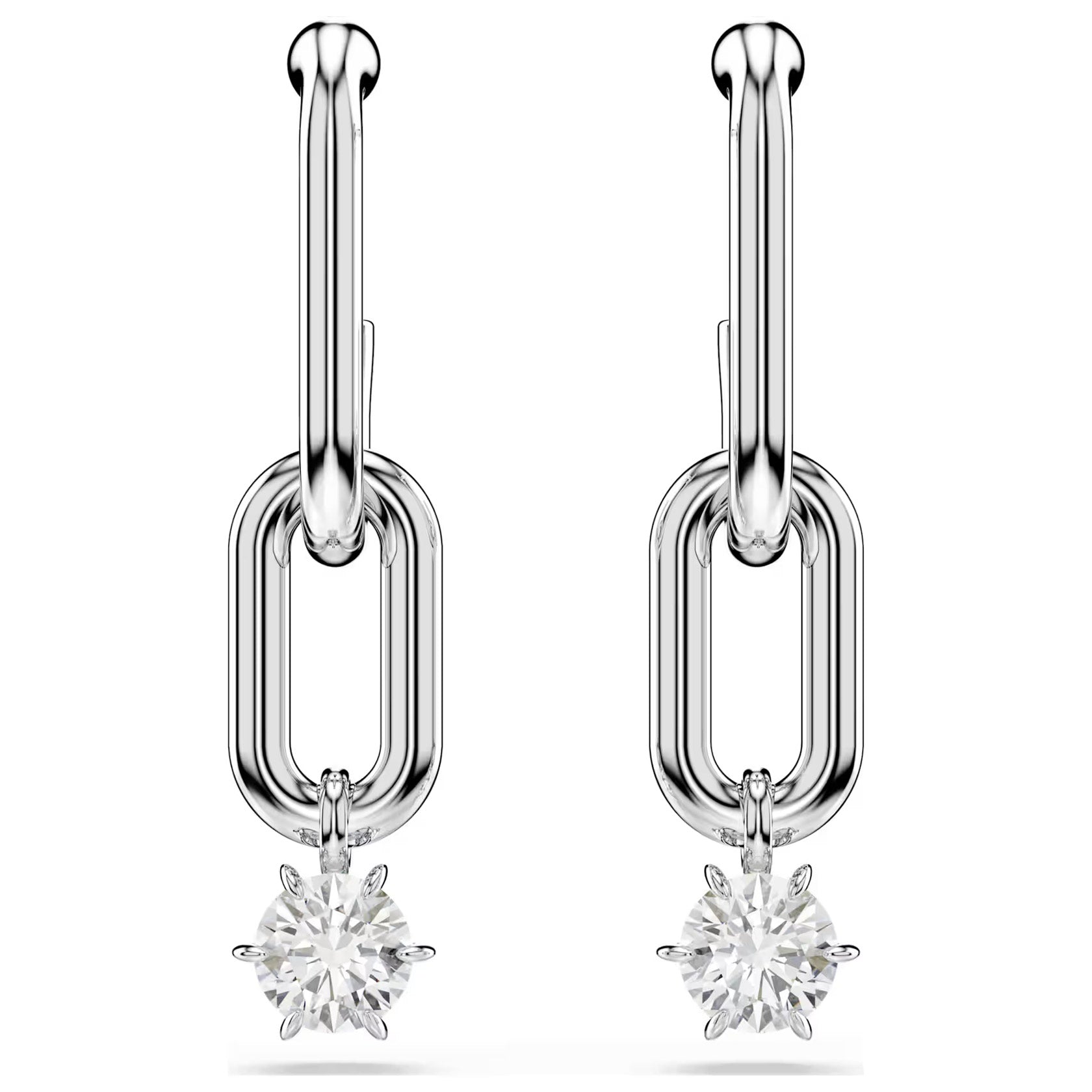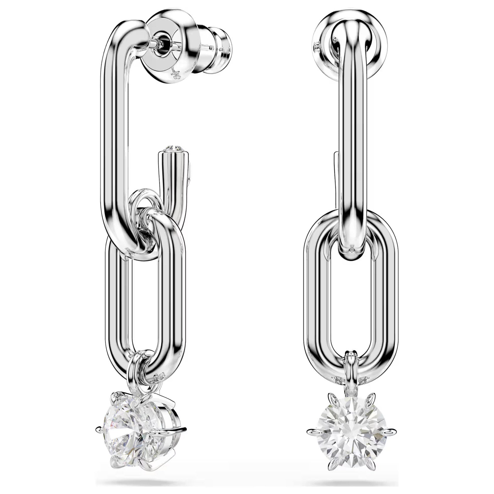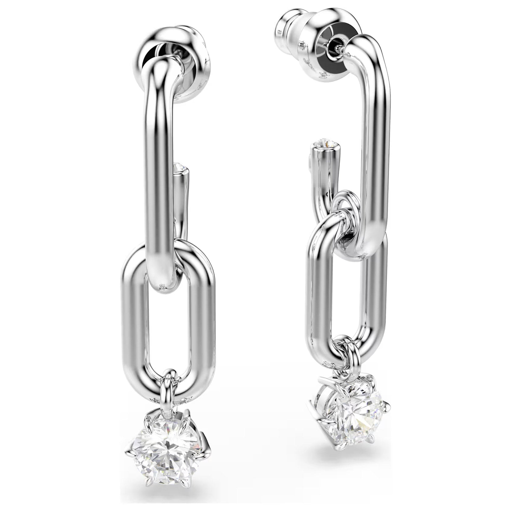 - Swarovski Constella drop link earrings, Round cut, White, Rhodium plated