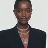 These playful earrings are a perfect choice for unexpected styling. Each piece features two interconnecting links in rhodium plating with a prong-set Swarovski Zirconia that delicately hangs beneath. It’s a sleek, metallic look for any occasion, with an extra burst of Swarovski light.
