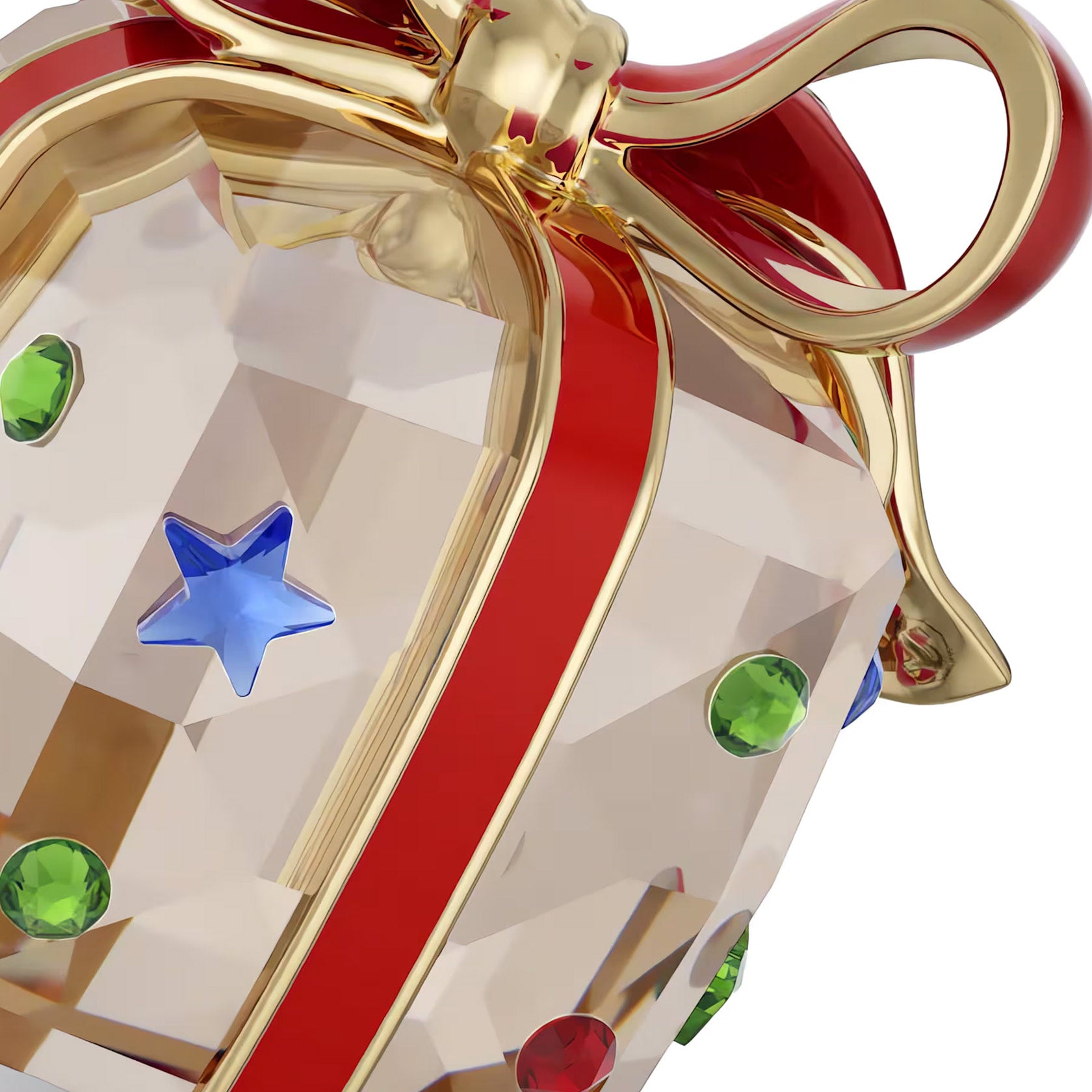 This playful gift-wrapped ornament is an ideal addition to any festive tree. Suspended from a red grosgrain ribbon, the parcel design is crafted with Swarovksi’s Golden Shadow effect and 426 facets, while also featuring decorative crystals in red, green, and blue. The ribbon is neatly formed from champagne gold-tone metal with a red lacquer. Add this ornament to your own seasonal display or gift it to someone special for a touch of holiday joy.