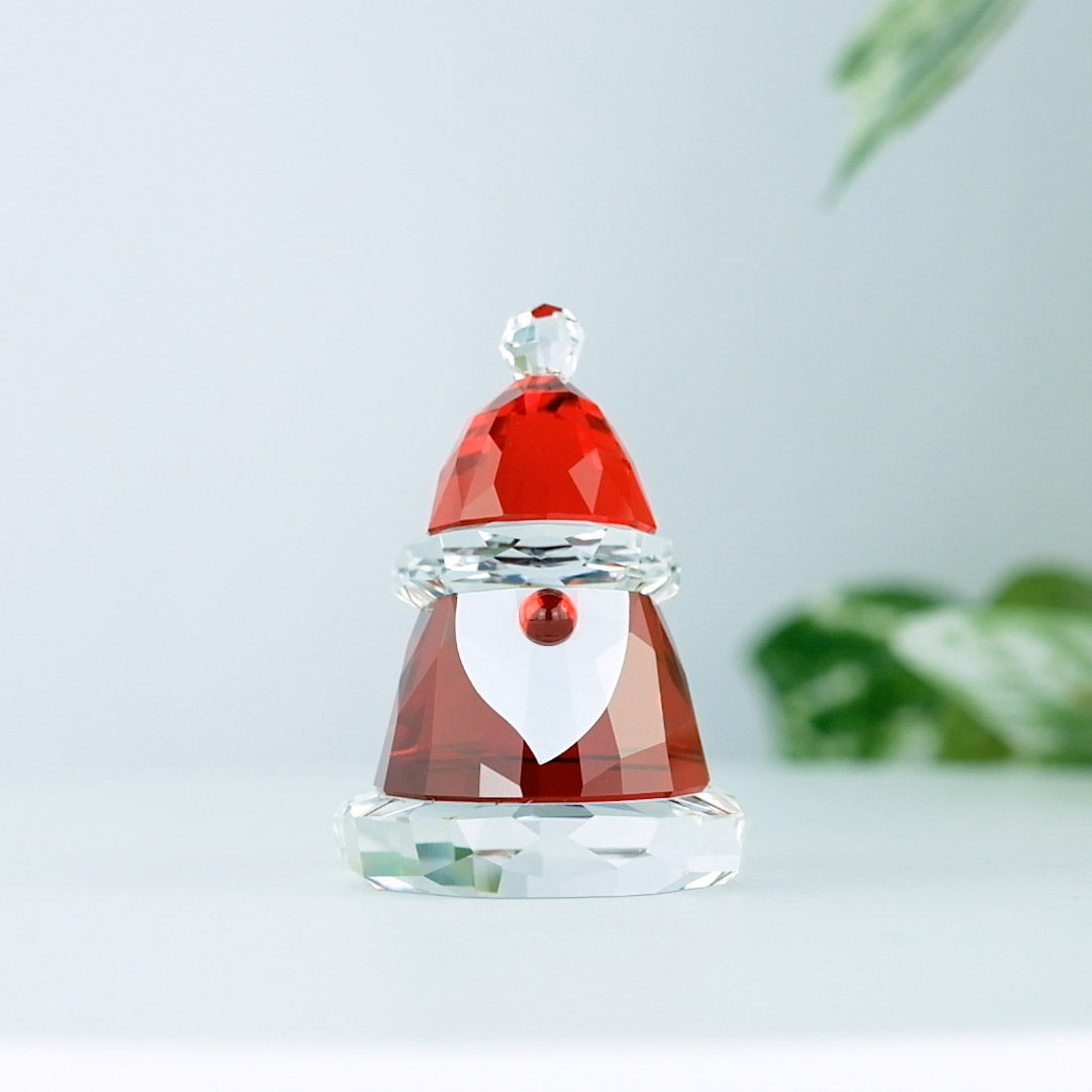 Combining classic, festive colours with playful modern style, this small Santa ornament shines in red and clear crystal with white print. Expertly crafted with 290 facets, it will brighten up your home and makes a charming gift.