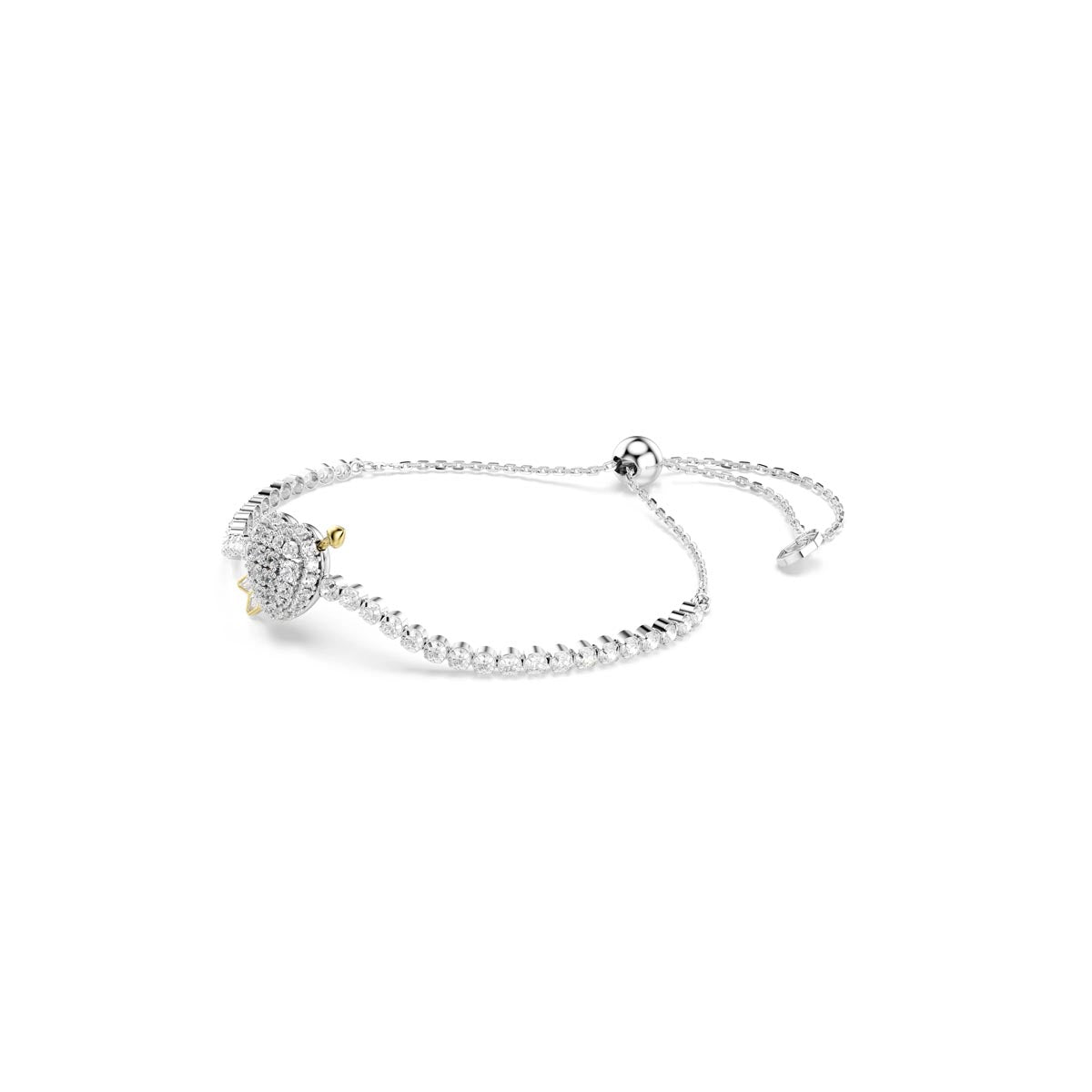 True love meets radiant light in this Swarovski bracelet from the Idyllia family. The soft chain is lined with round-cut crystals in a rhodium plated setting, while at the center, a glittering heart motif is pierced by Cupid’s gold-tone arrow. Adjust the fit to your size using the sliding closure, and pair the bracelet with other matching jewelry from the same romance-inspired range.