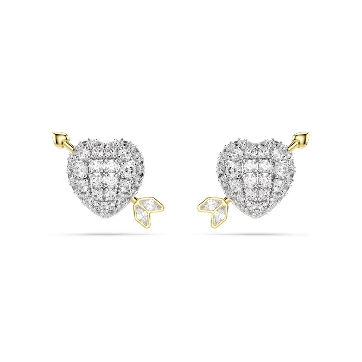 Celebrate true love with these heart-shaped Idyllia studs. Each piece features a rhodium plated heart with glittering Swarovski Zirconia, pierced by Cupid’s gold-tone plated arrow. A subtle yet expressive way to define your personal style.