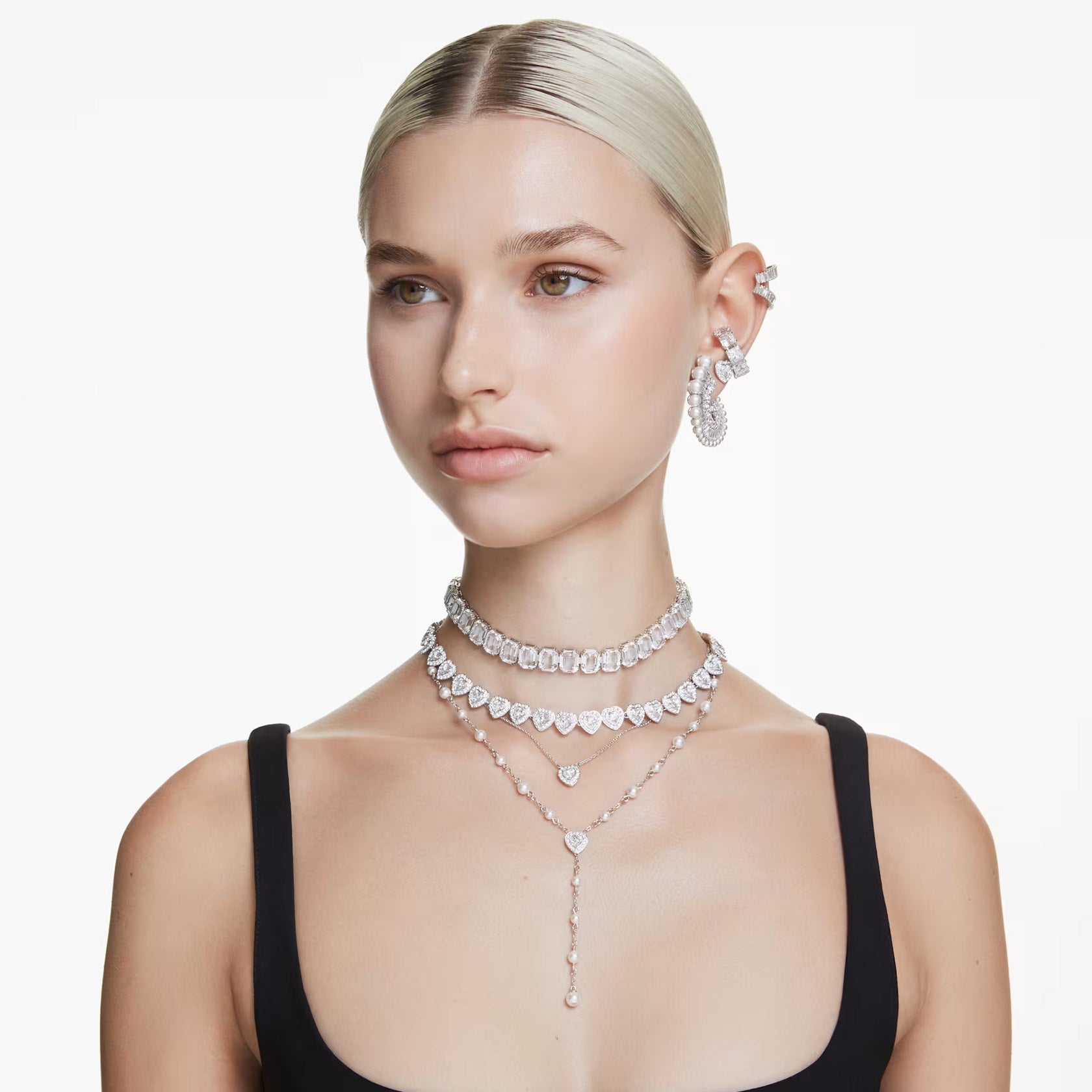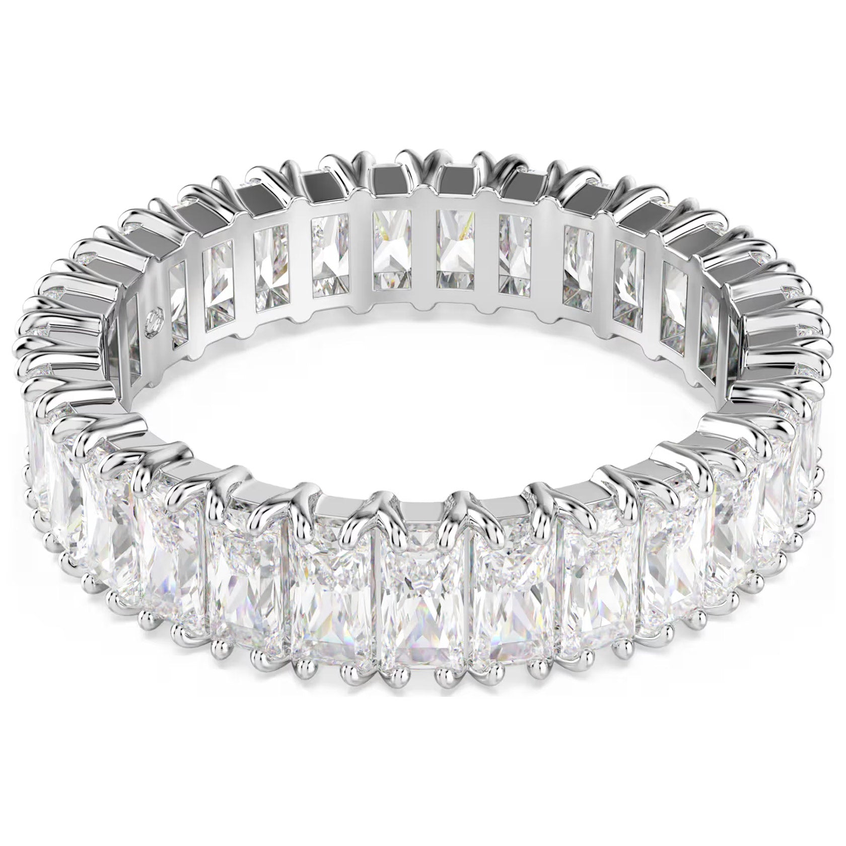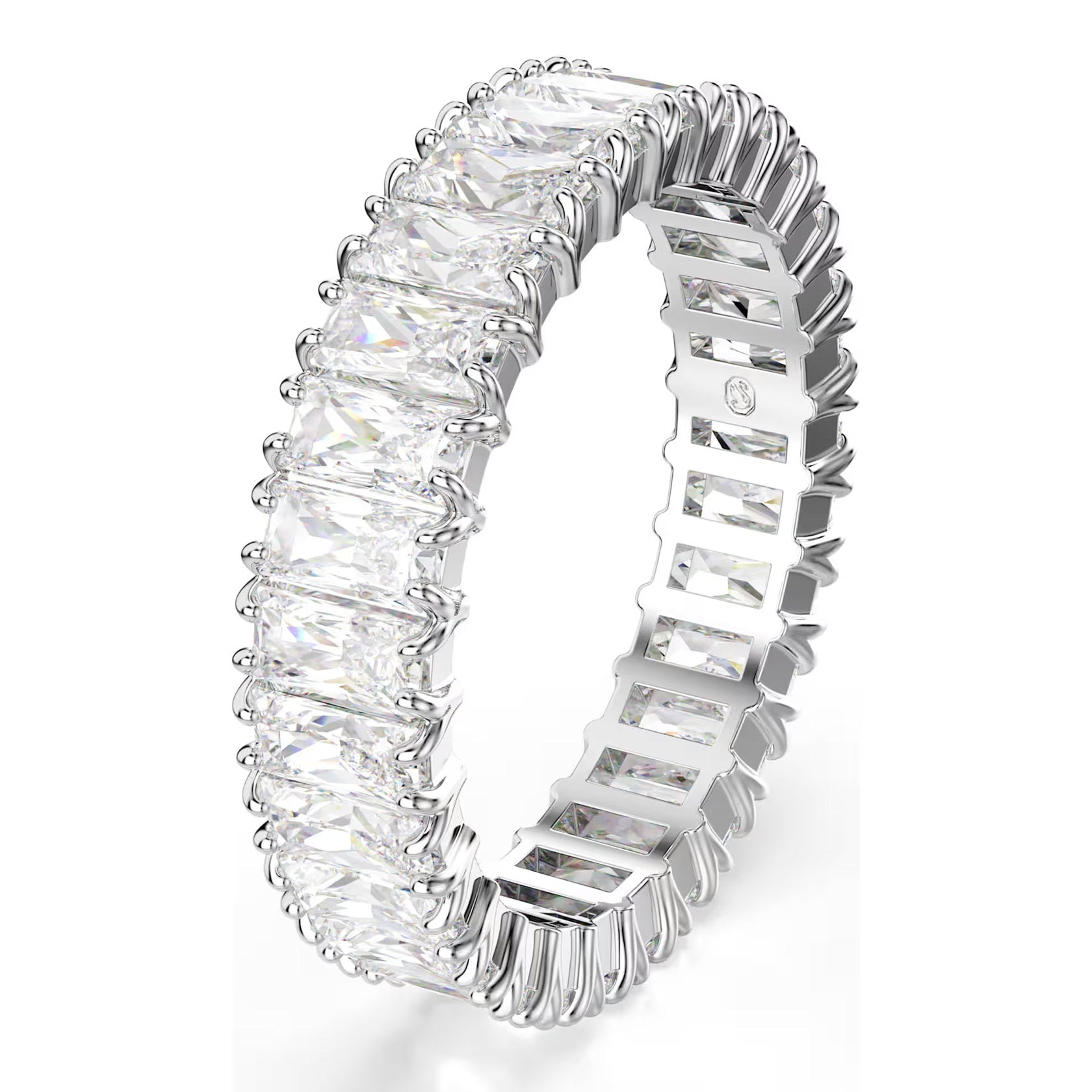 No jewellery collection is complete without a radiant band ring. This silver-tone finish design features a full surround of baguette-cut Swarovski Zirconia, each placed within a refined prong setting. A sensational piece to wear solo or stacked with similarly dazzling rings from the Matrix family.