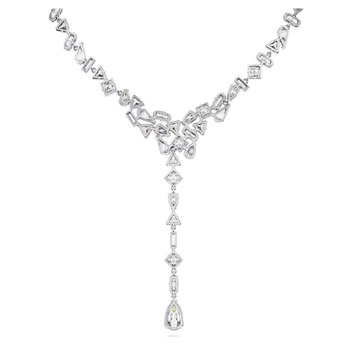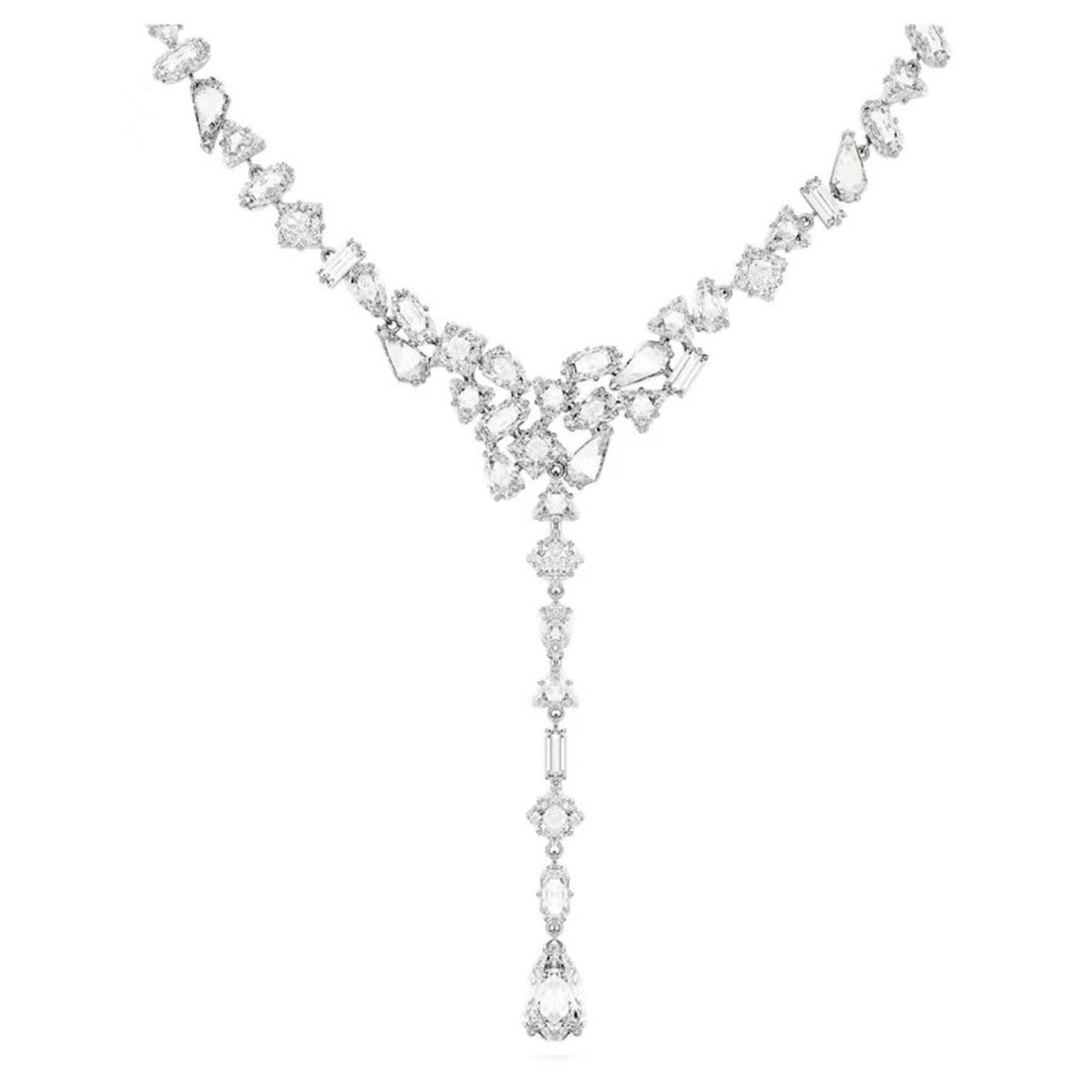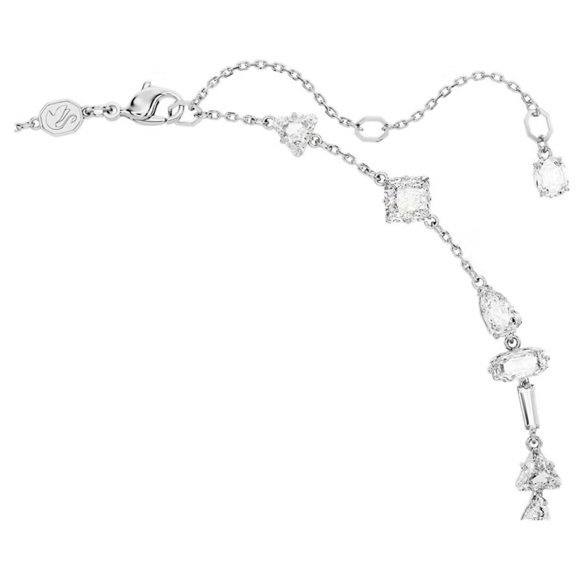 - Swarovski Mesmera Y necklace, Mixed cuts, White, Rhodium plated