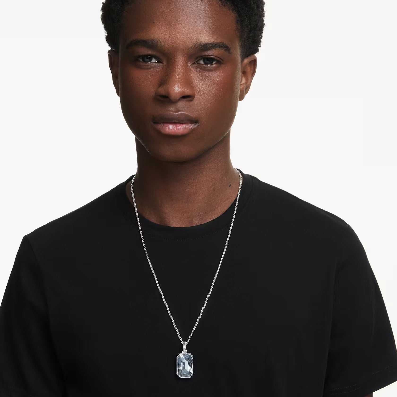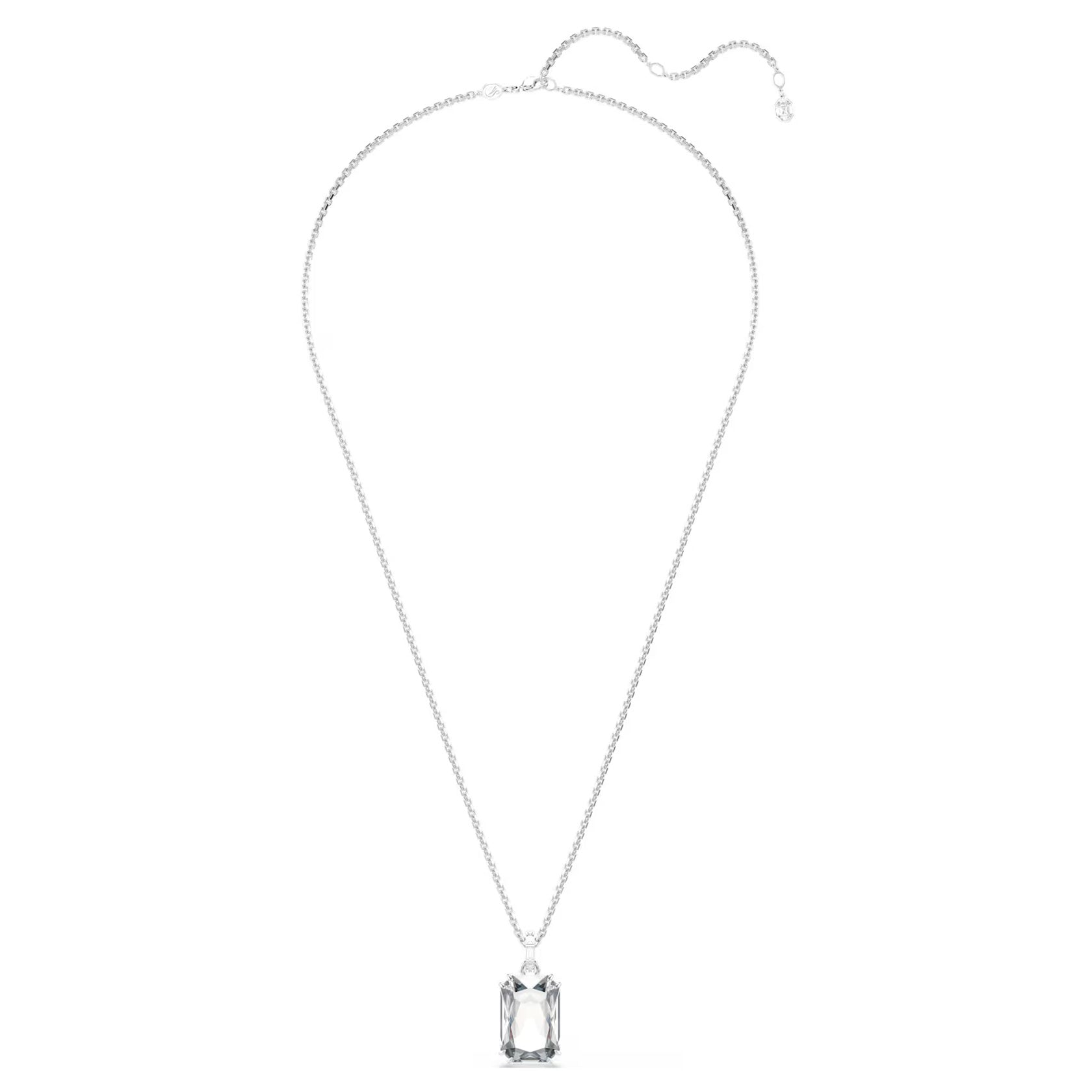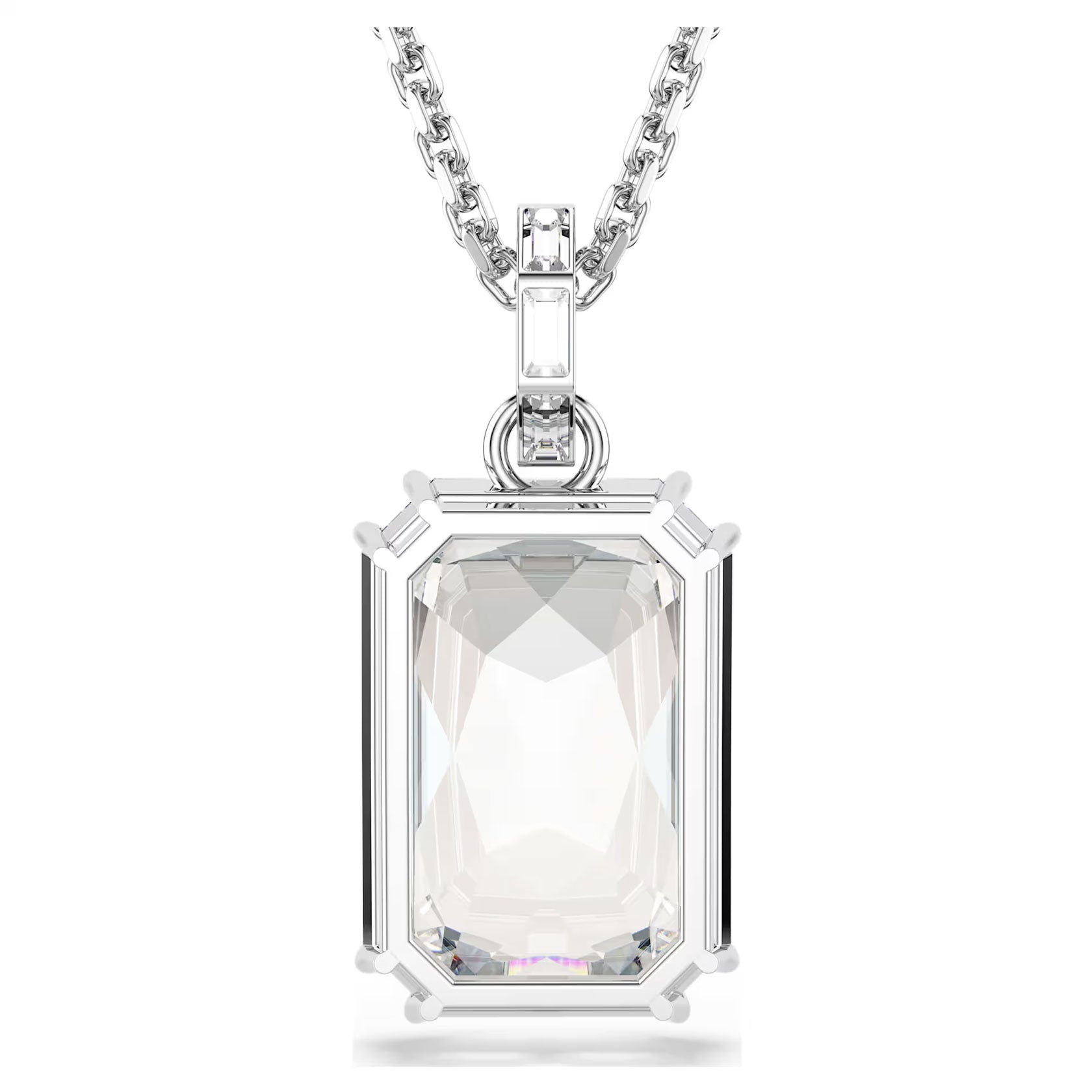 With emblematic Millenia style, this luminous pendant is a pure creation of light. The central motif is crafted from a large clear crystal in a double prong setting and connects to the rhodium plated chain via an elegant bail adorned in channel-set crystals. A mesmerizing choice to elevate your everyday glow.