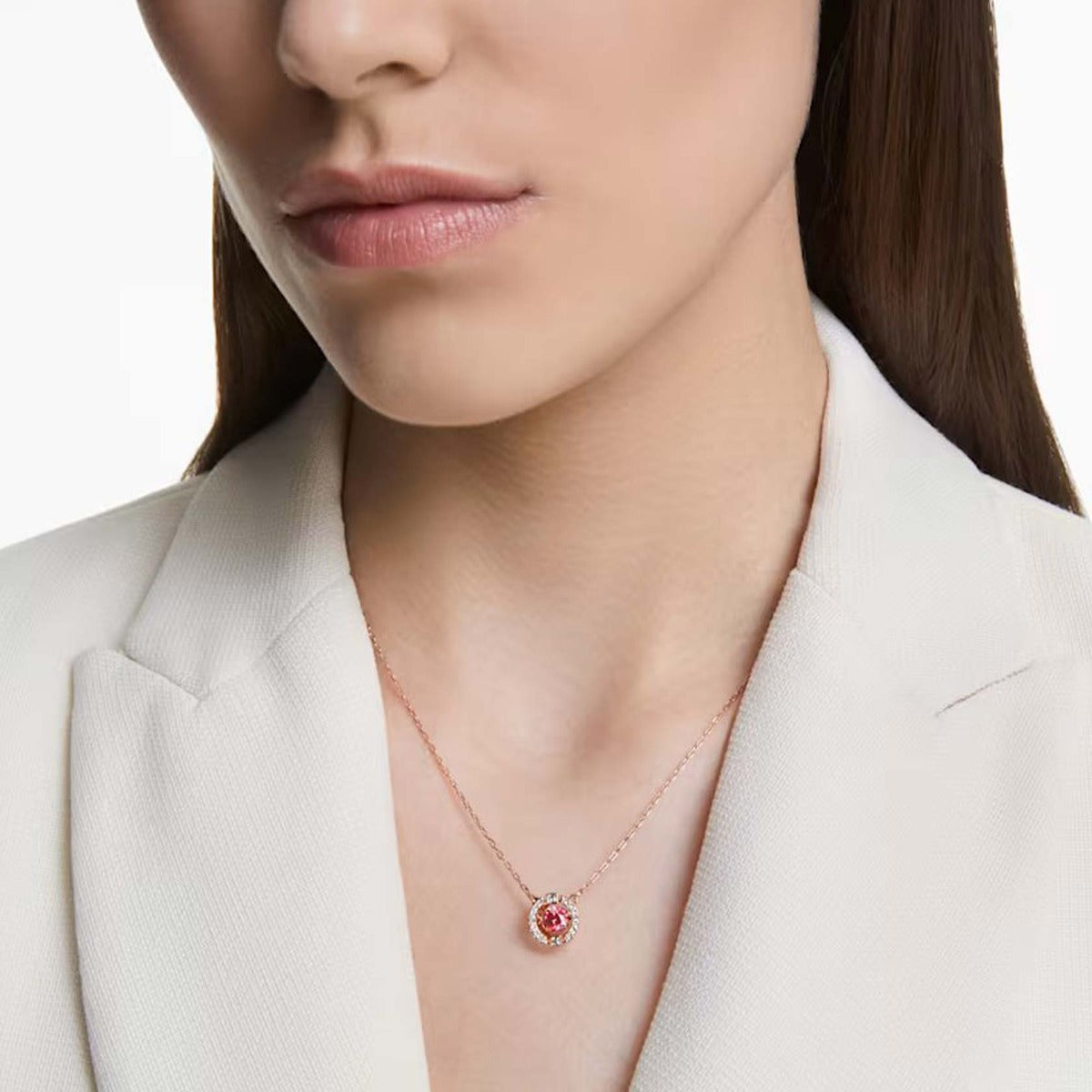 - Swarovski Sparkling Dance Round Necklace, Red, Rose Gold Plated