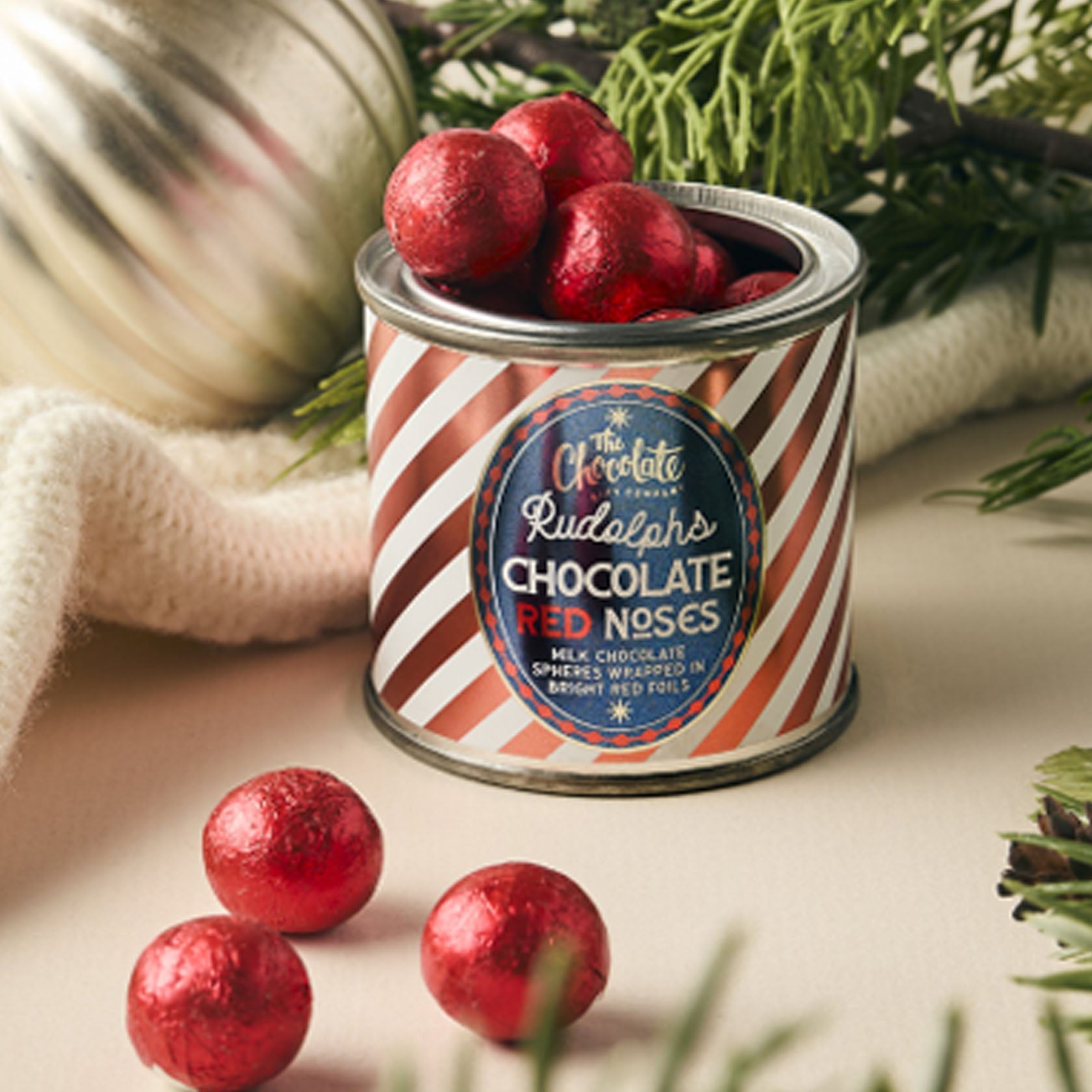The Chocolate Gift Companies milk chocolate Reindeer Noses are wrapped in bright foils and are presented in our 100% recyclable or reusable little tins. With solid milk chocolate they are the perfect stocking filler for all ages. Tin contains 15 solid chocolate balls.