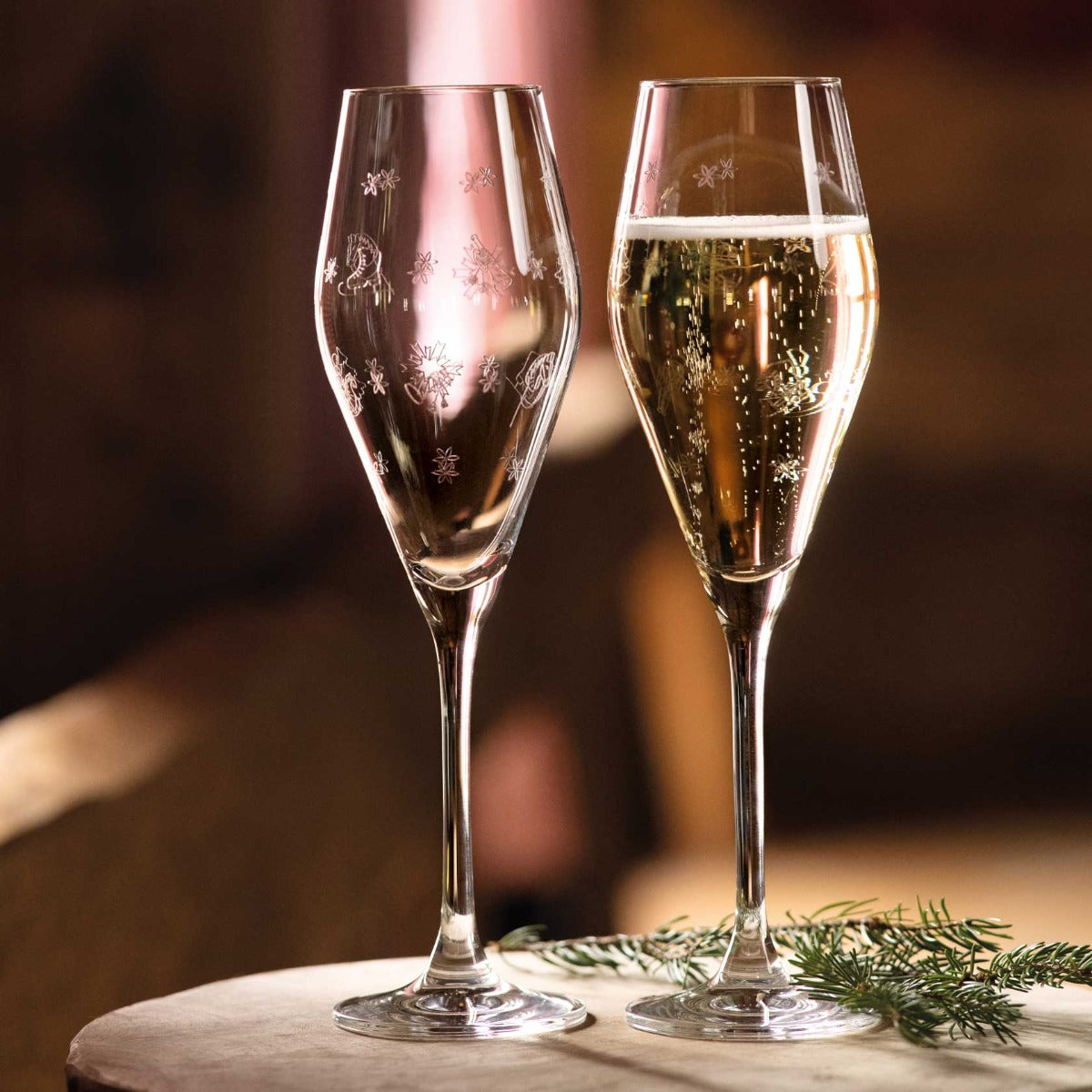 Toy's Delight has been delighting people for years. Matching champagne flutes with Christmas motifs complete the collection. Suitable for a festive dinner or lunch. The perfect gift.