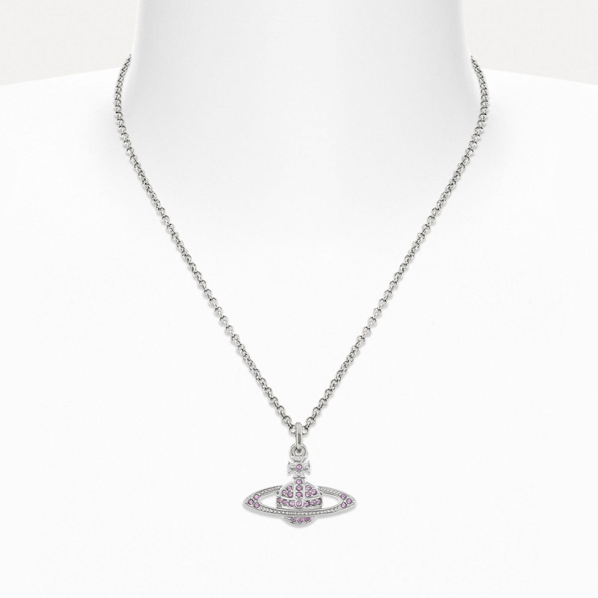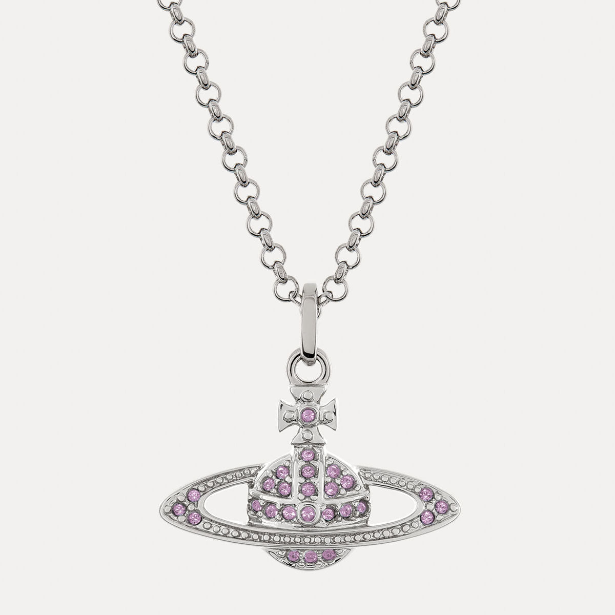 The orb is an essential element of the house’s iconography, evoking Vivienne's vision of launching tradition into the future. Vivienne Westwood's Mini Bas Relief Pendant necklace features a crystal-encrusted orb in violet tones, complete with an engraved tag at the classic lobster clasp.